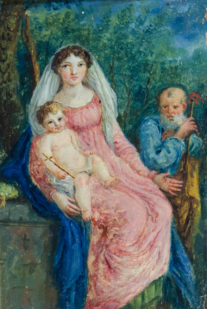 Maestro del XVIII secolo "Sacra famiglia" cm. 16x10 - olio su tavoletta