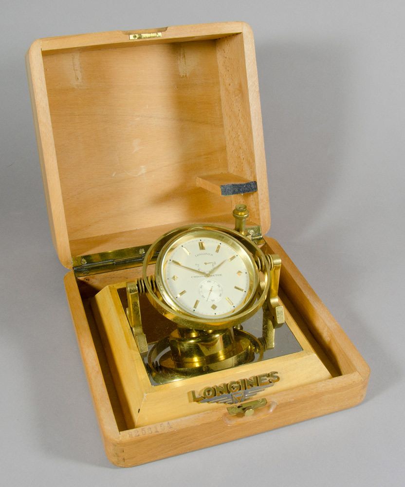 Lotto 424 | Longines: orologio da bordo in ottone entro teca originale in legno.