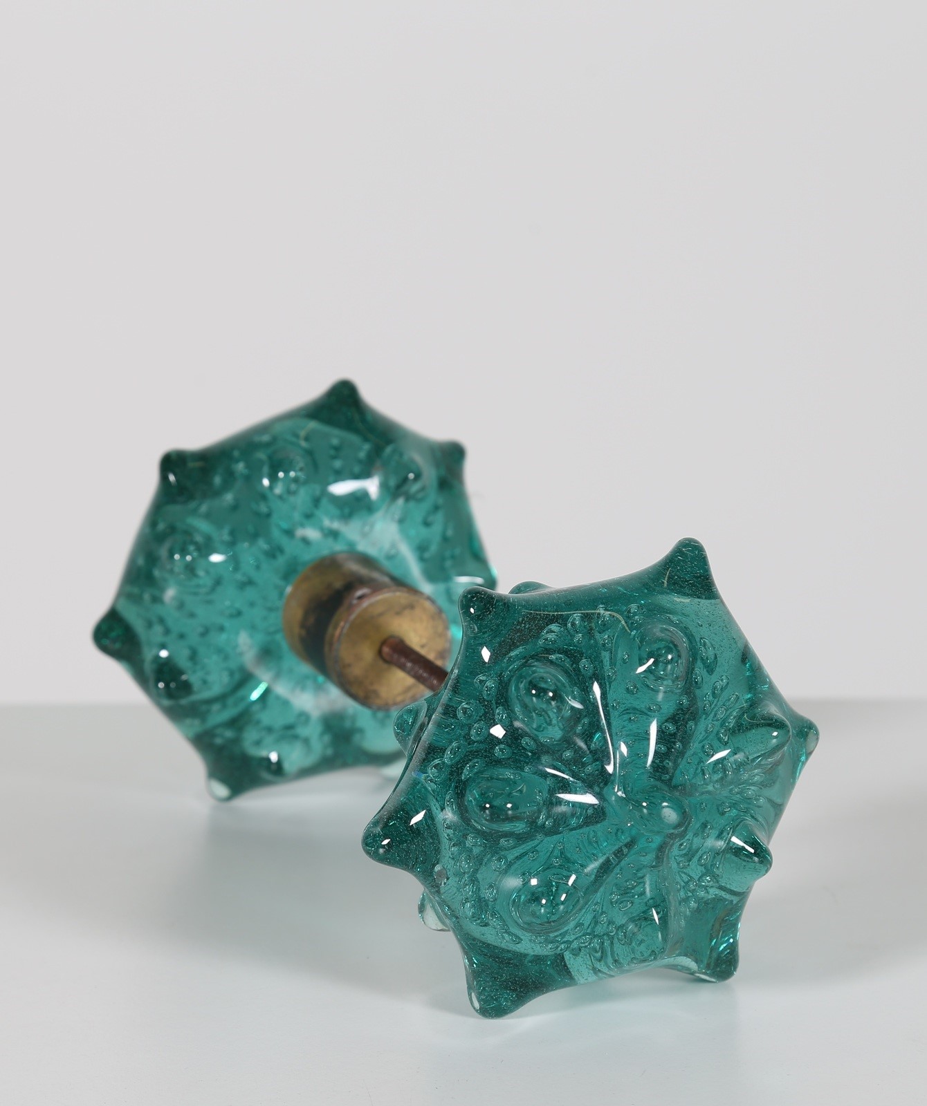 SEGUSO VETRI D'ARTE Maniglia completa in cristallo a bollicine, anni 50. -. Cm 11,00 x 11,00 x 8,00.