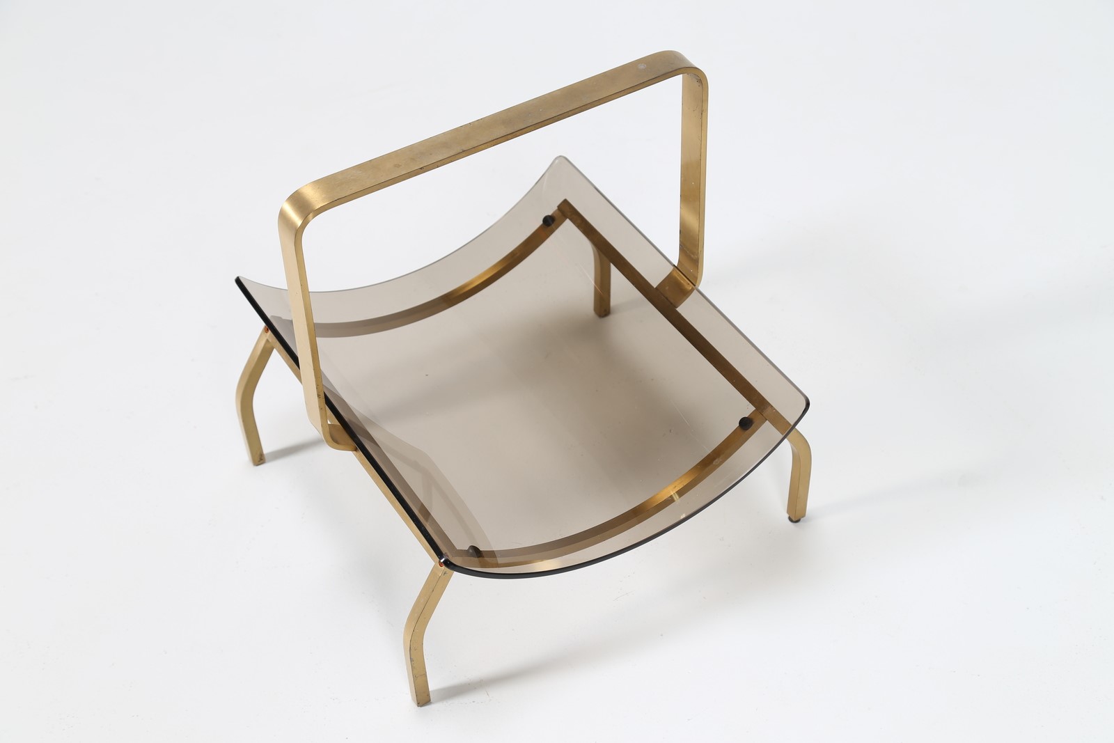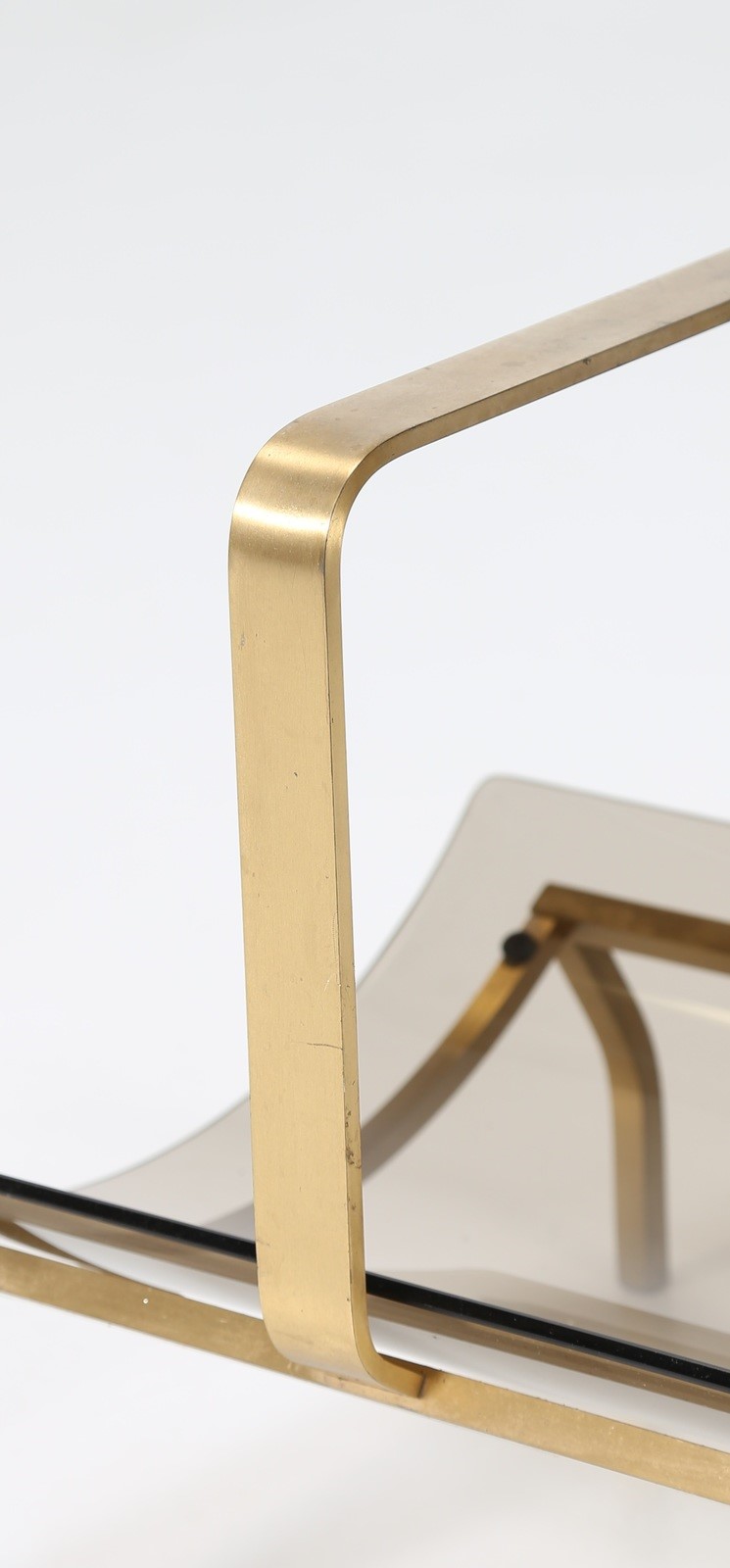 FONTANA ARTE Portariviste in ottone e vetro, anni 60 . -. Cm 40,00 x 39,00 x 36,50.