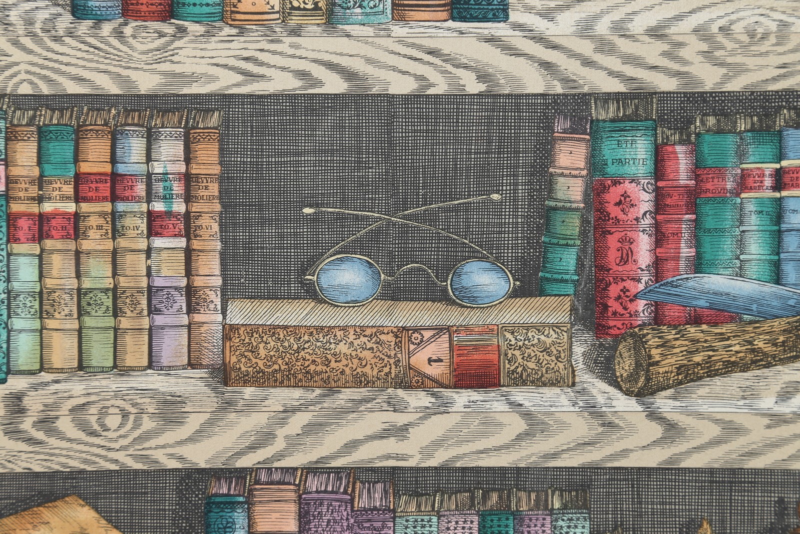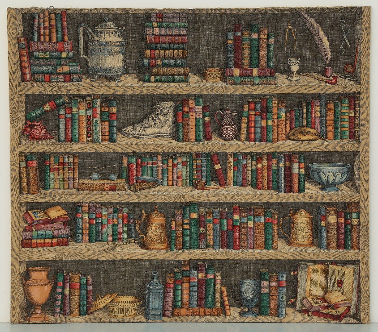 FORNASETTI PIERO (1913 - 1988) Pannello in tessuto stampato anni 70°. -. Cm 139,00 x 122,00.