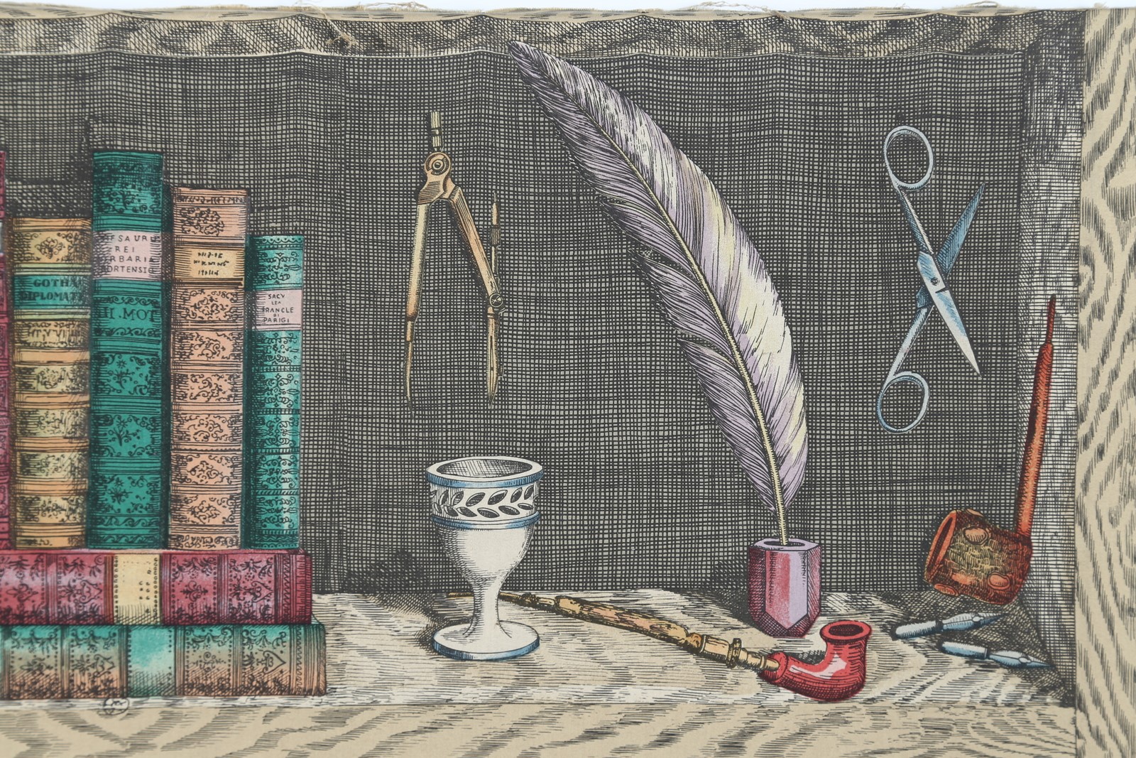 FORNASETTI PIERO (1913 - 1988) Pannello in tessuto stampato anni 70°. -. Cm...