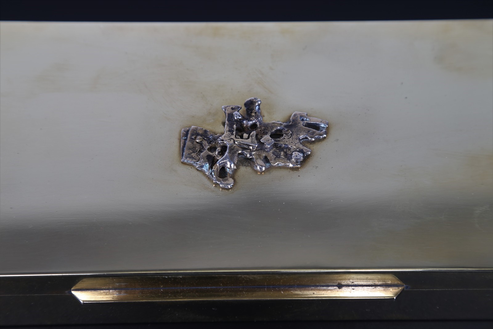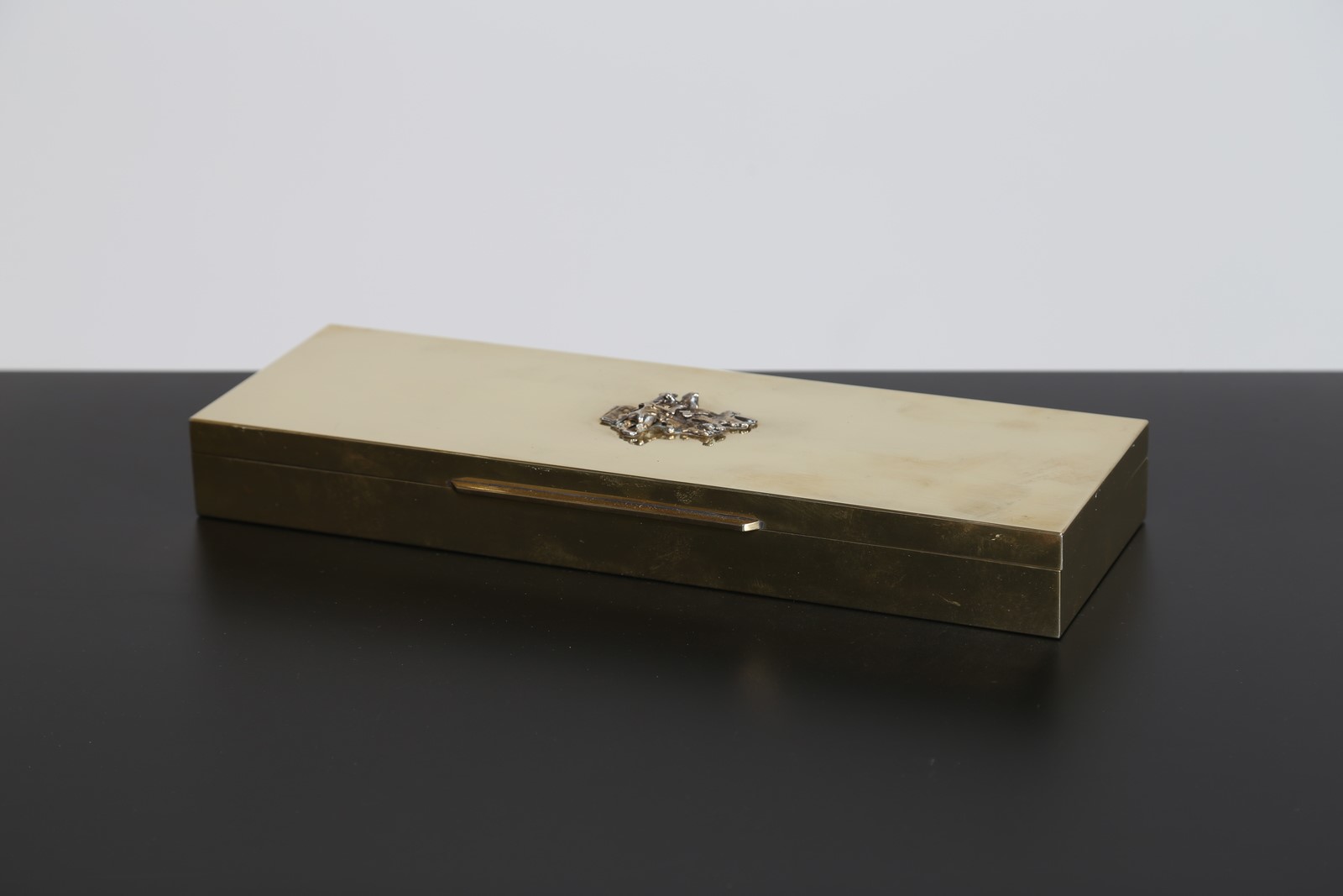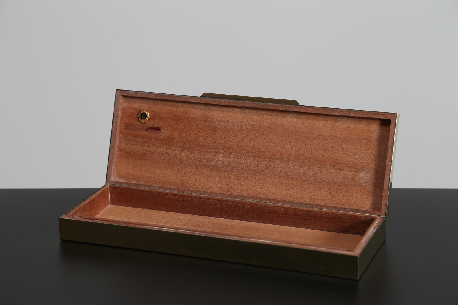 MANIFATTURA ITALIANA Scatola in ottone e legno per Lions Club, . . Cm 32,50 x 4,00 x 11,00.