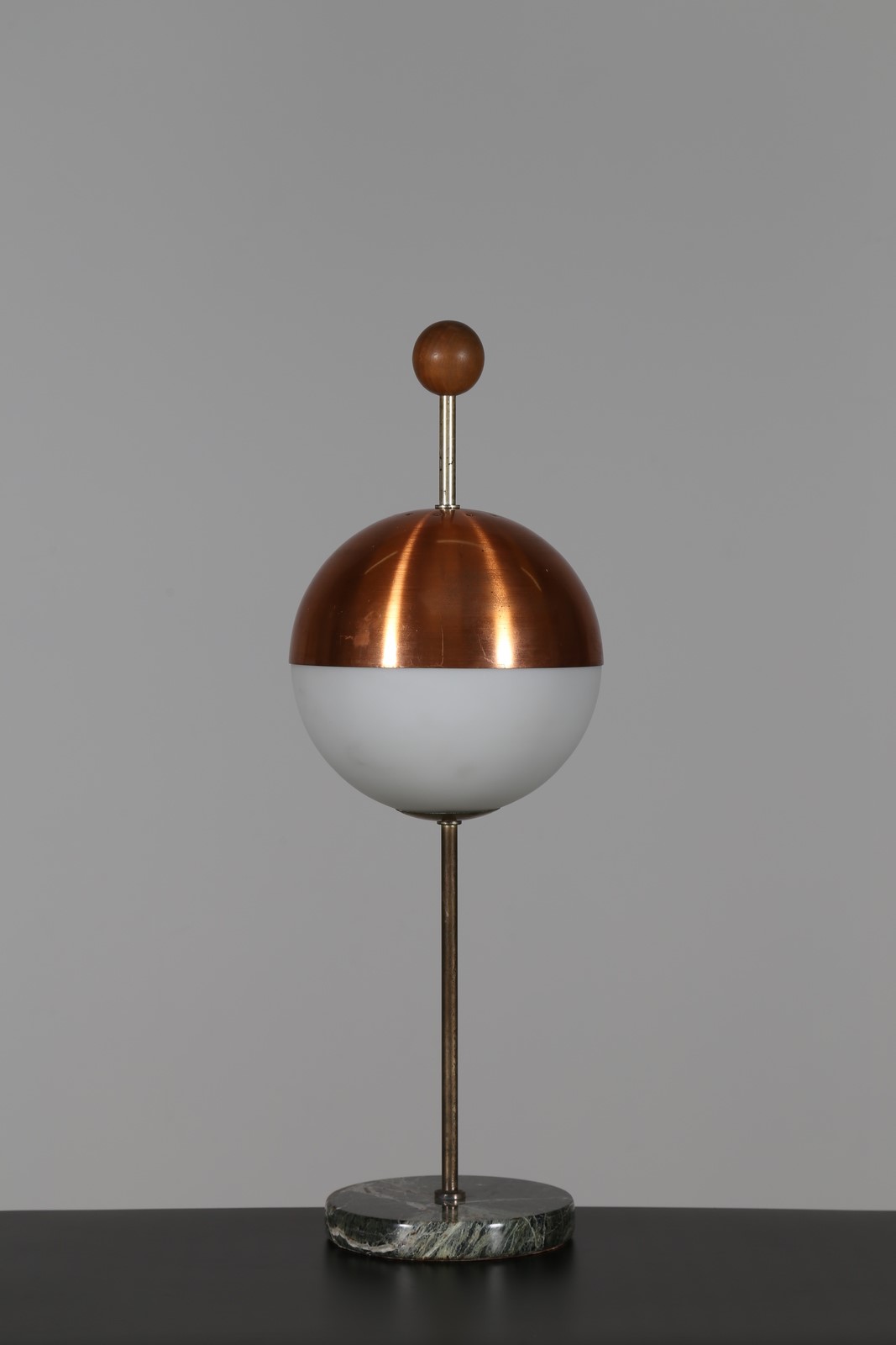 MANIFATTURA ITALIANA Lampada in metallo ottone e legno, con base in marmo e...
