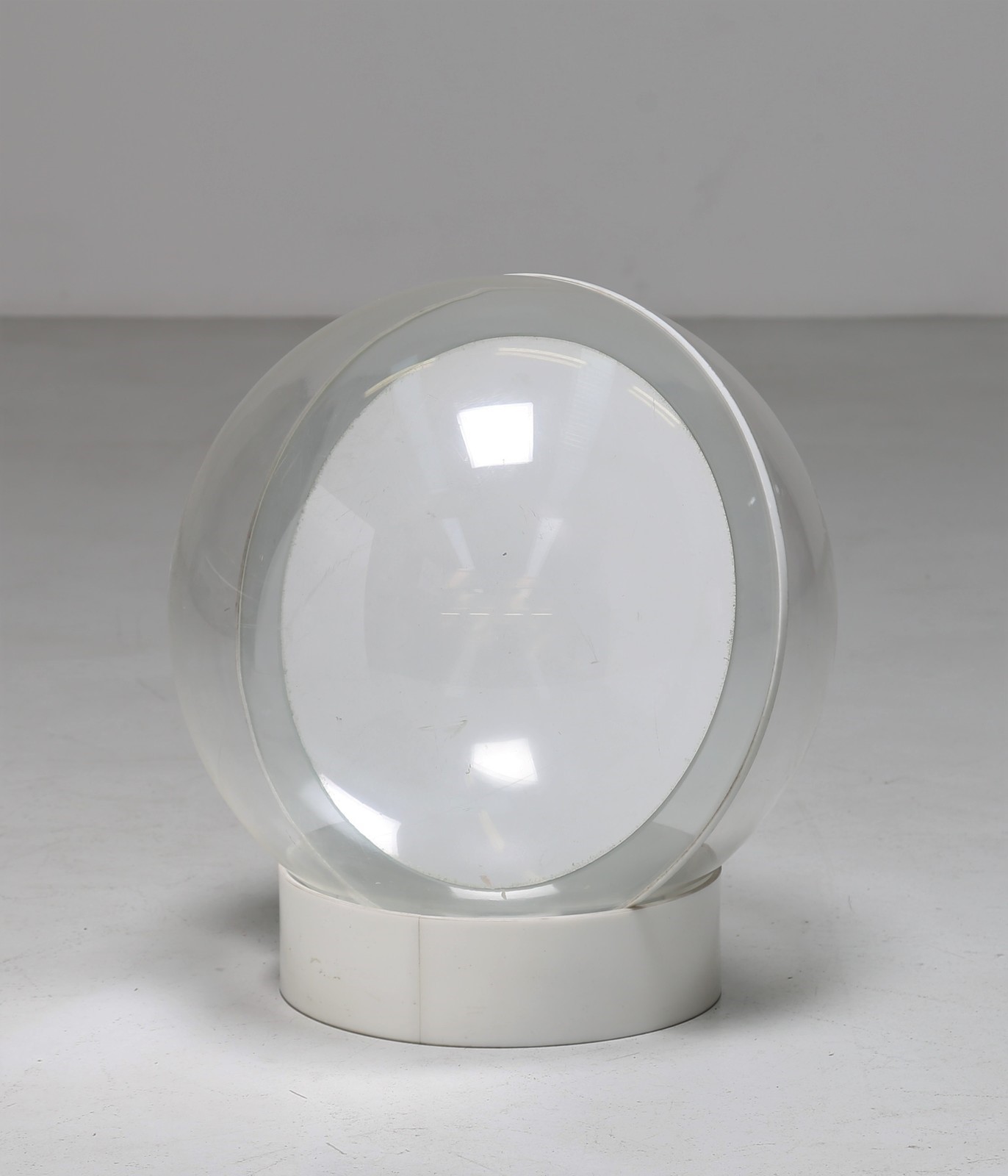 PANSECA FILIPPO (n. 1940) Lampada specchio da tavolo in cromo plexiglass e vetro specchiato, per Kartell 1968 . -. Cm 48,00 x 50,00 x 48,00.