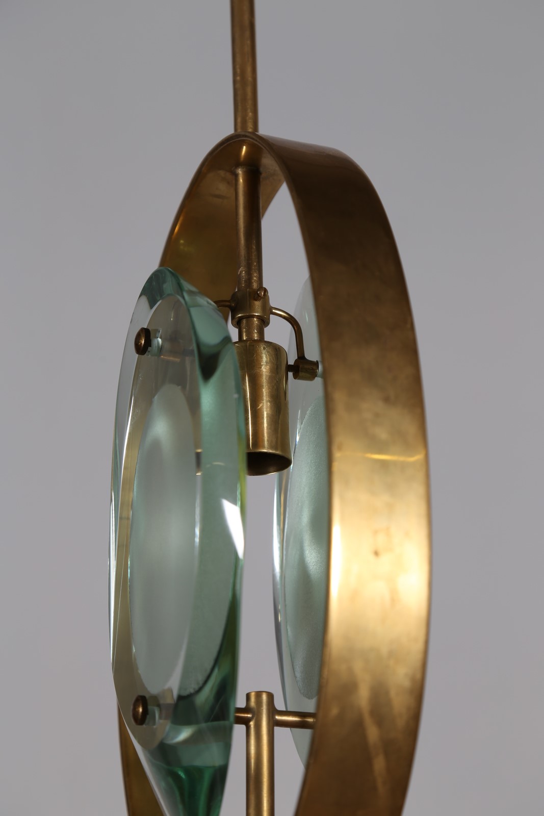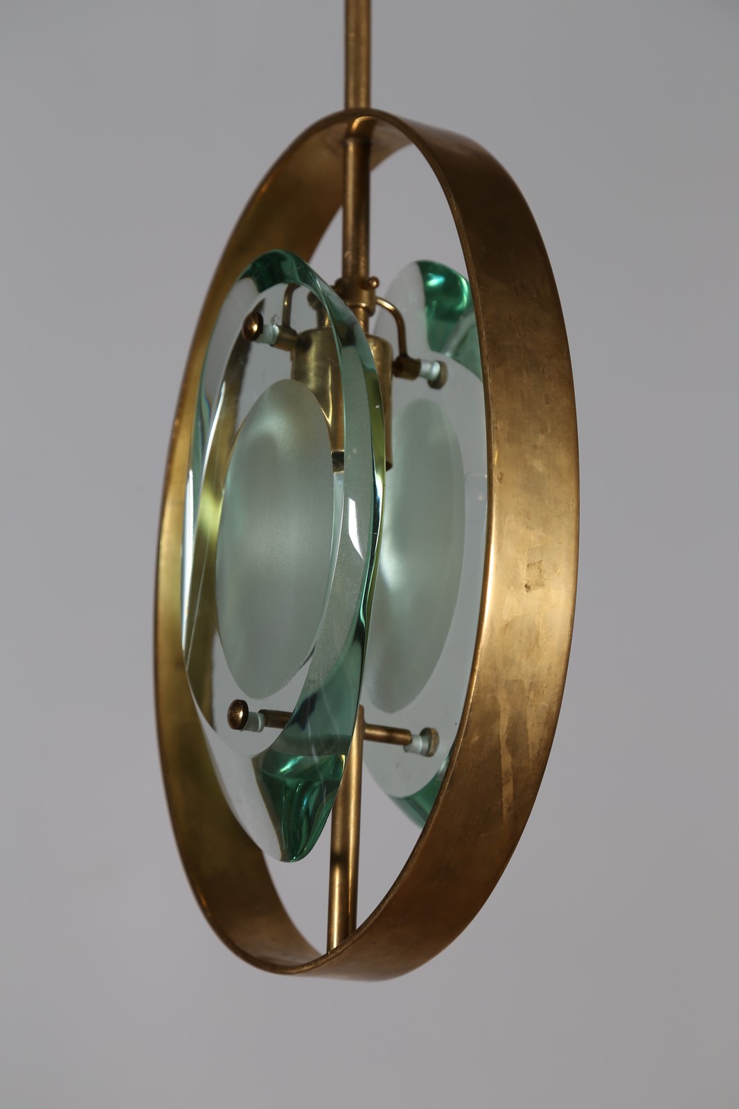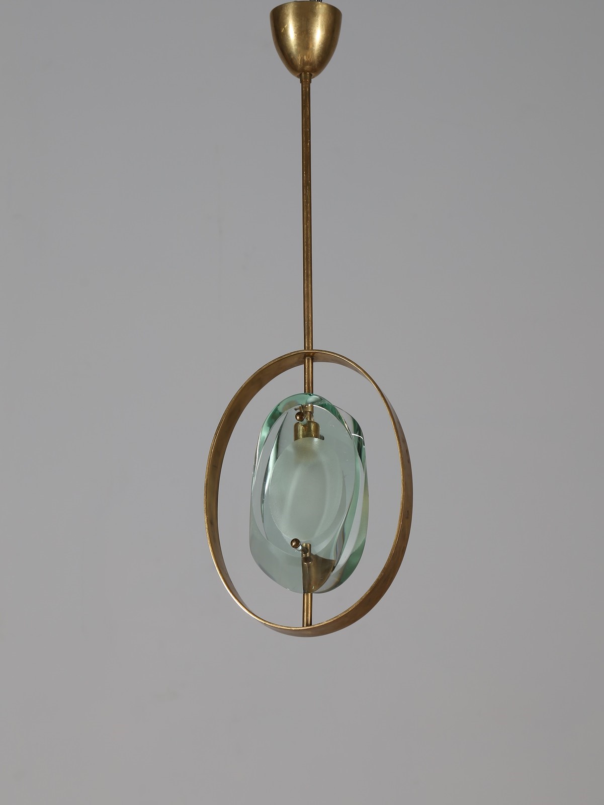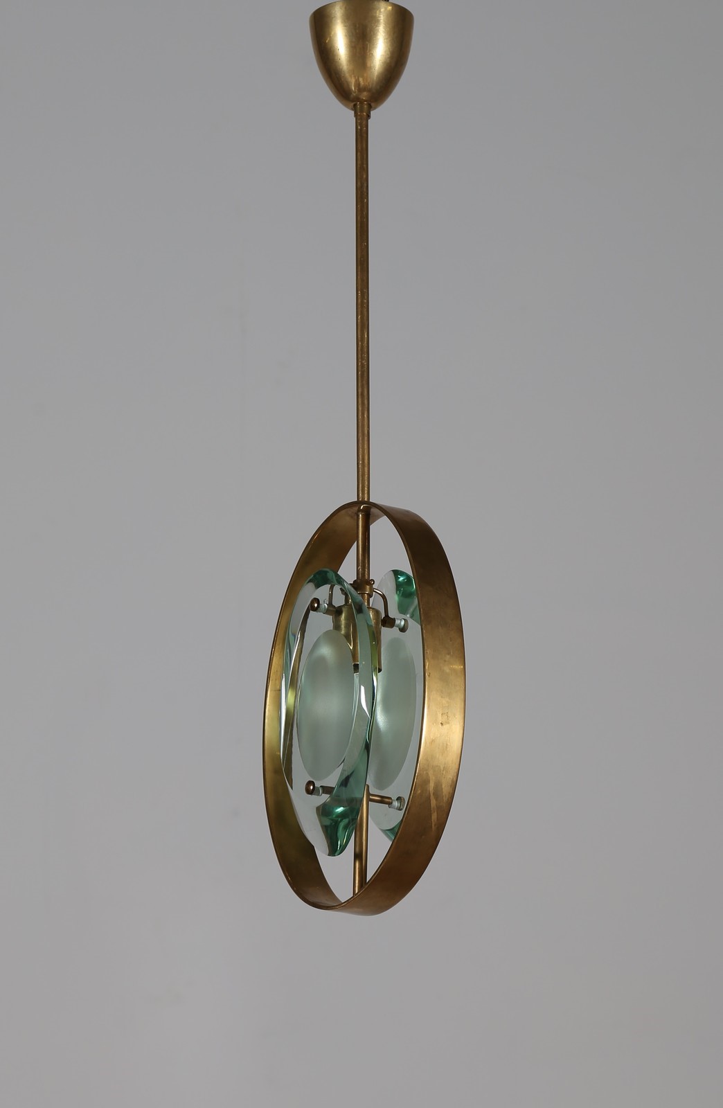 INGRAND MAX (1908 - 1969) Lampada a sospensione, mod. 1933, per Fontana Arte anni 60. Pubblicazioni; Quaderni Fontana Arte n° 1, Franco De Boni, Fontana Arte Gio Ponti Pietro Chiesa Max Ingrand, Allemandi, Torino, 2012, Tav. 306. . -. Cm 22,00 x 67,00 x 9,00.