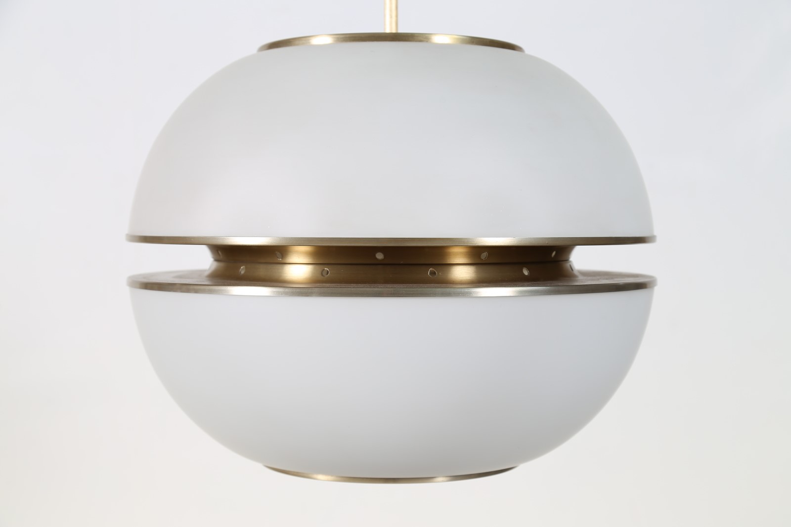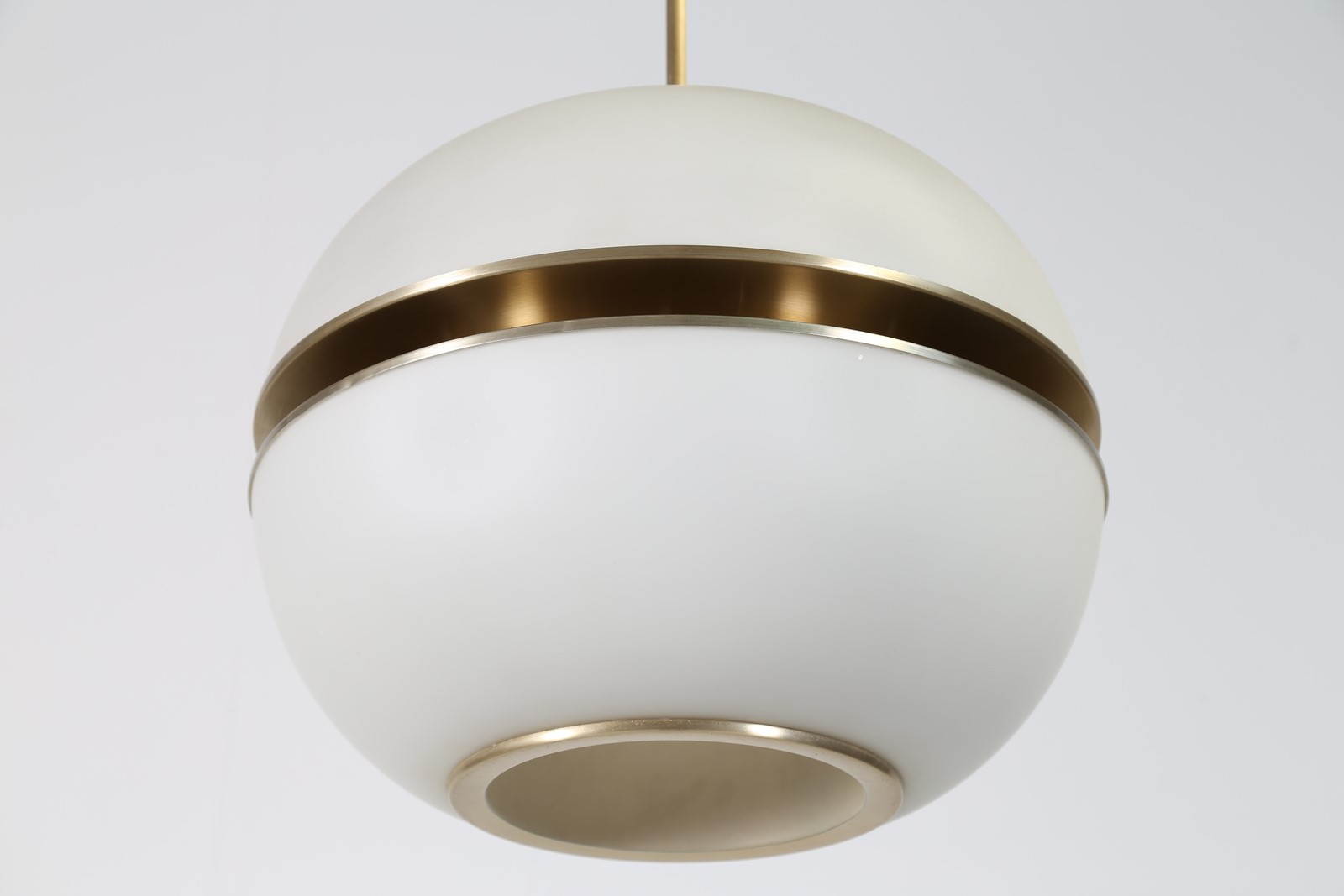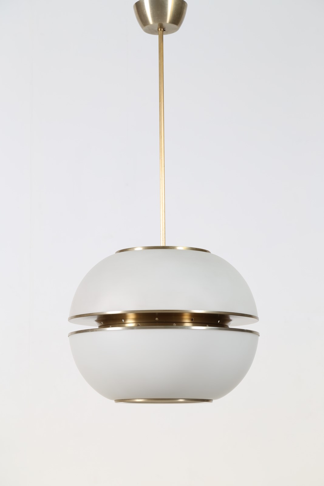 Lotto 184 | TORLASCO OSCAR Lampada a sospensione in ottone e vetro satinato, per Lumi...