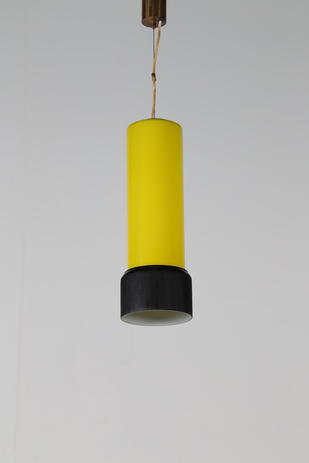 STILNOVO Attrib. Lampada da soffitto in ottone e vetro, anni 50. . Cm 17,00 x 75,00 x 17,00.