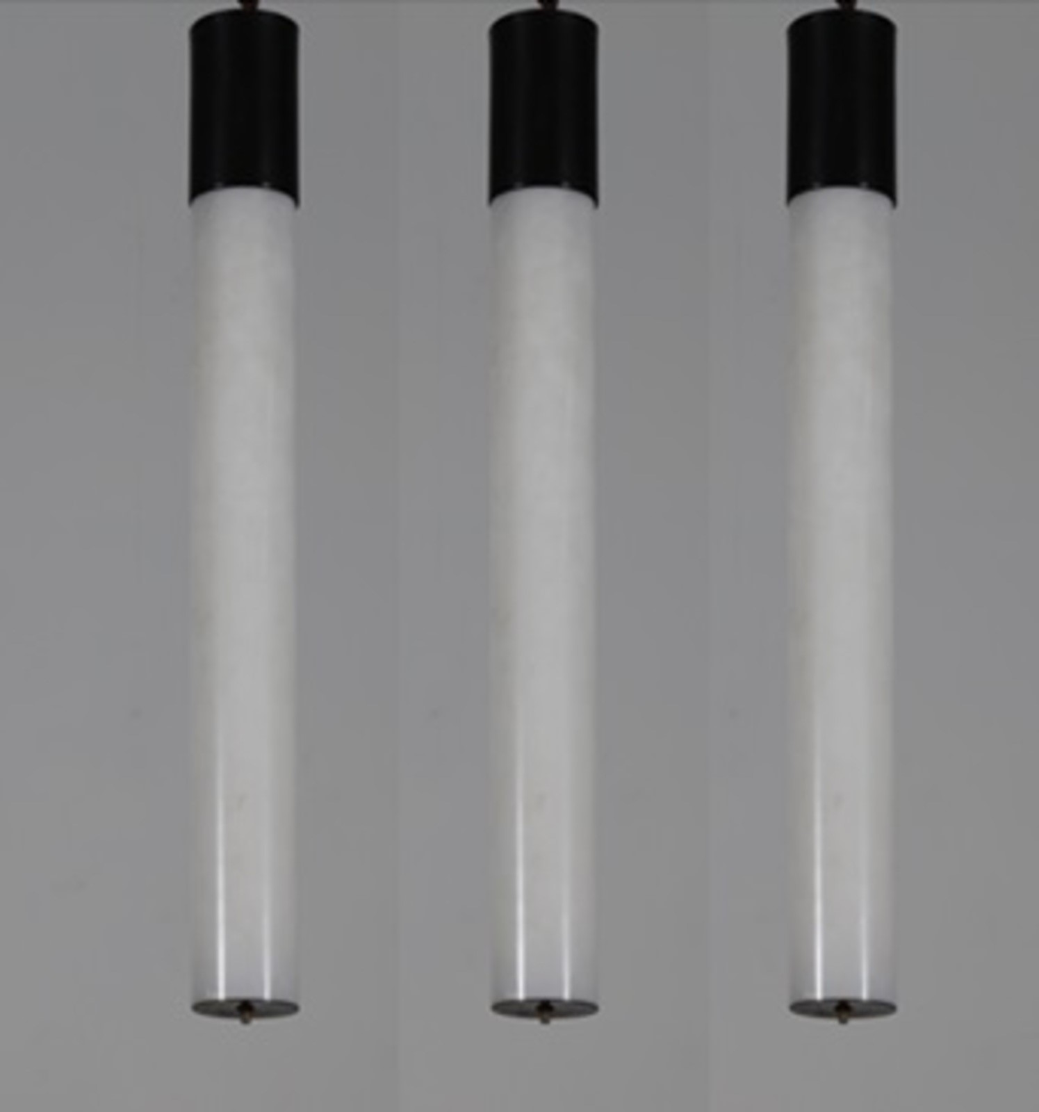 STILNOVO Attrib. Tre lampade da soffitto in metallo laccato ottone e vetro satinato, anni 50. -. Cm 8,50 x 77,00.