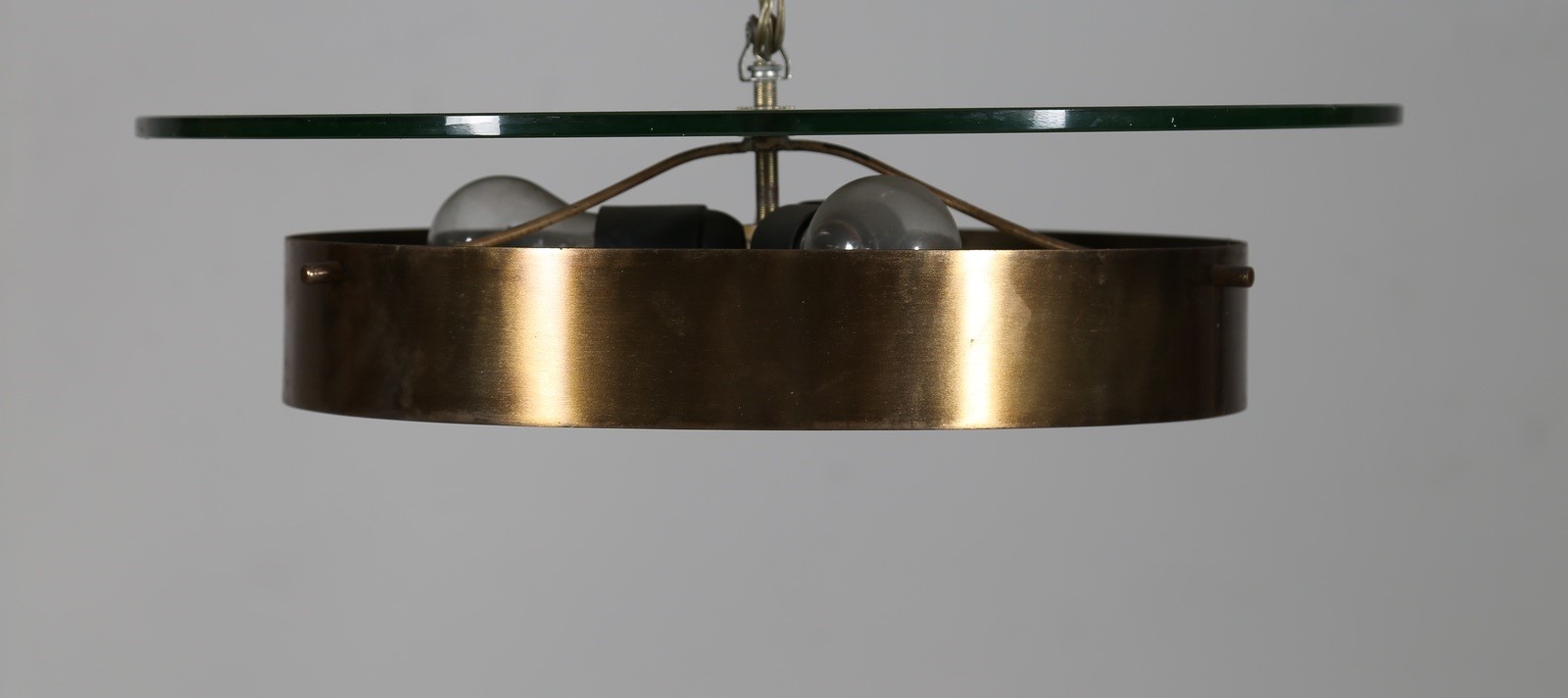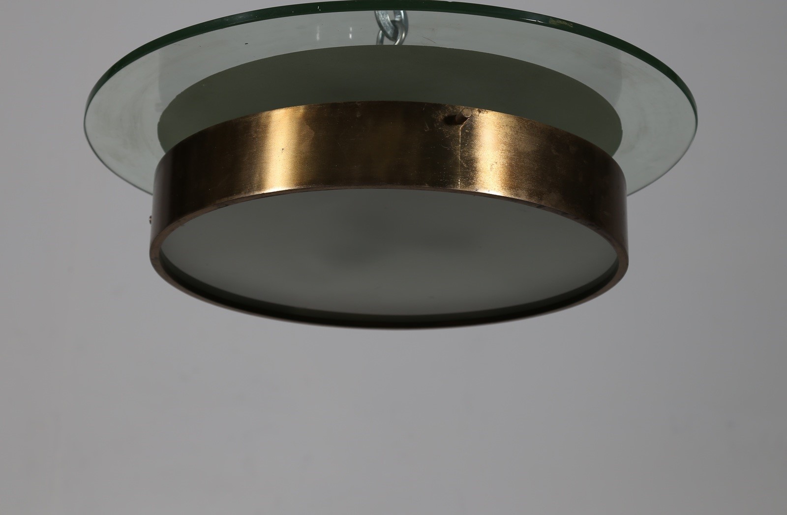 STILNOVO Grande plafoniera in ottone metallo laccato cristallo e vetro satinato, anni 50 . . Cm 50,00 x 15,00.
