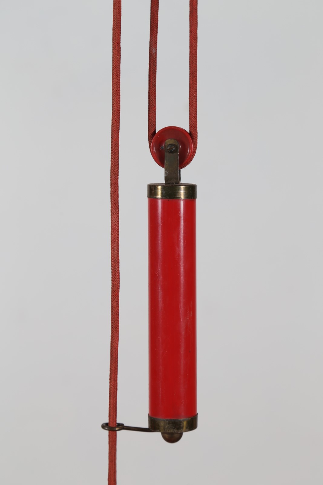 MANIFATTURA ITALIANA Lampadario saliscendi in metallo laccato e ottone, anni...