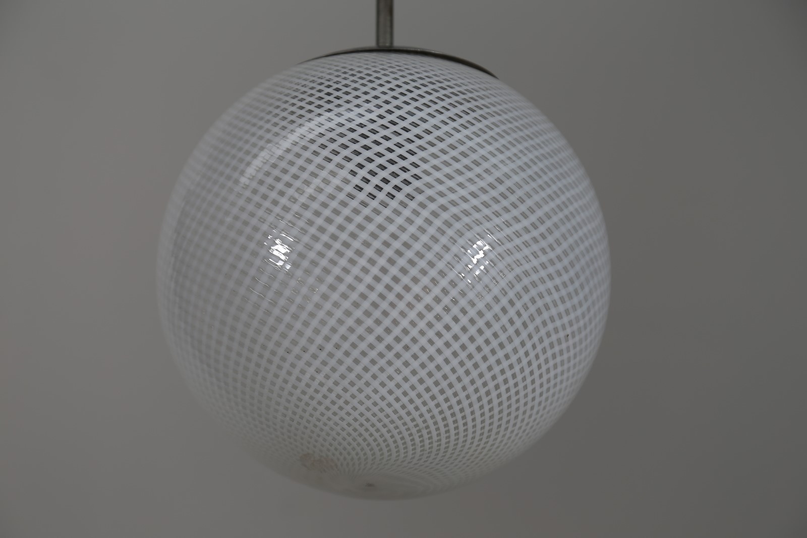 Lotto 197 | VENINI Lampada a sospensione in ottone e vetro reticello, anni 50 . -. Cm...