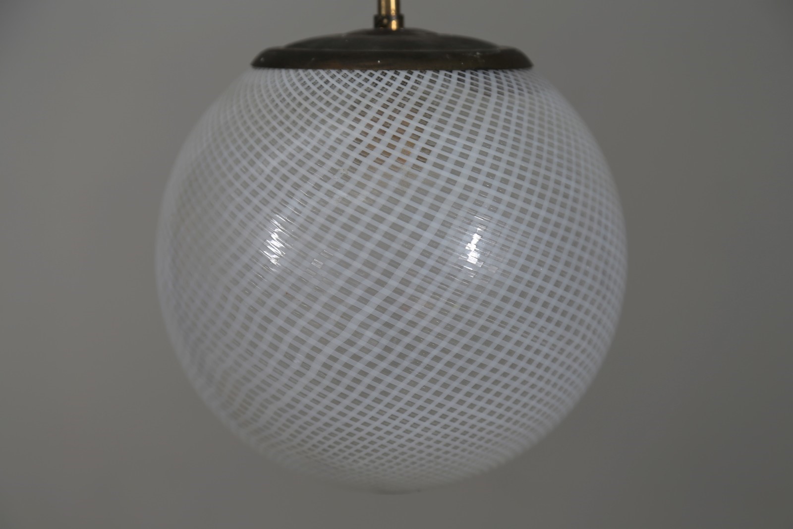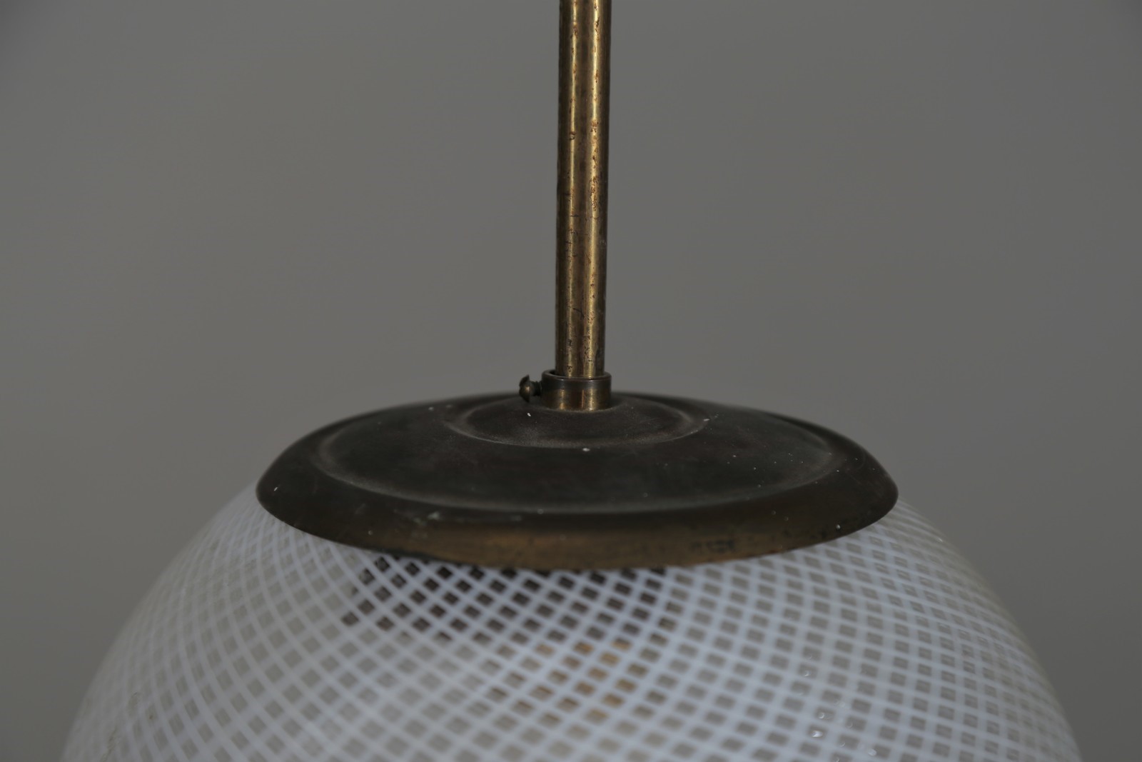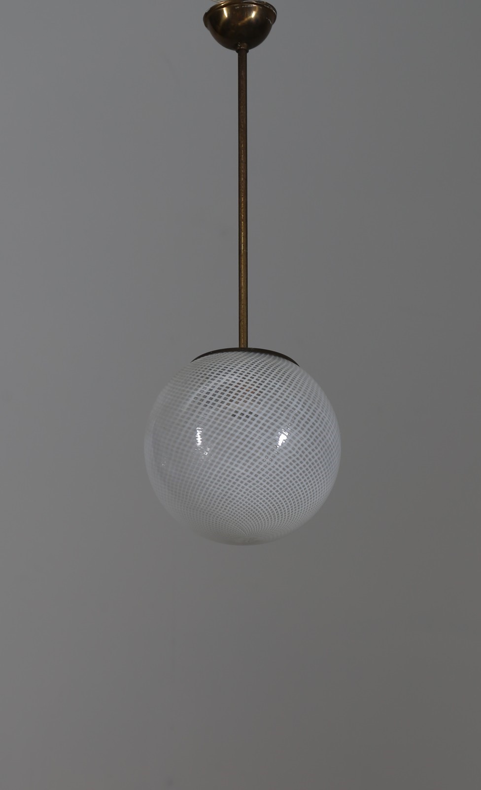 VENINI Lampada a sospensione in ottone e vetro reticello, anni 50 . -. Cm...