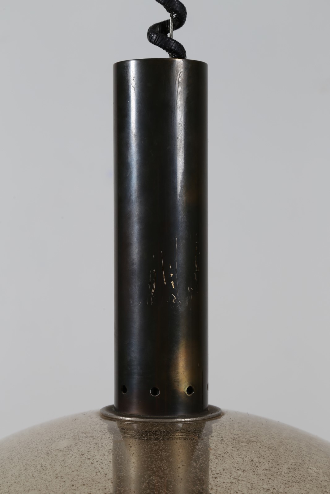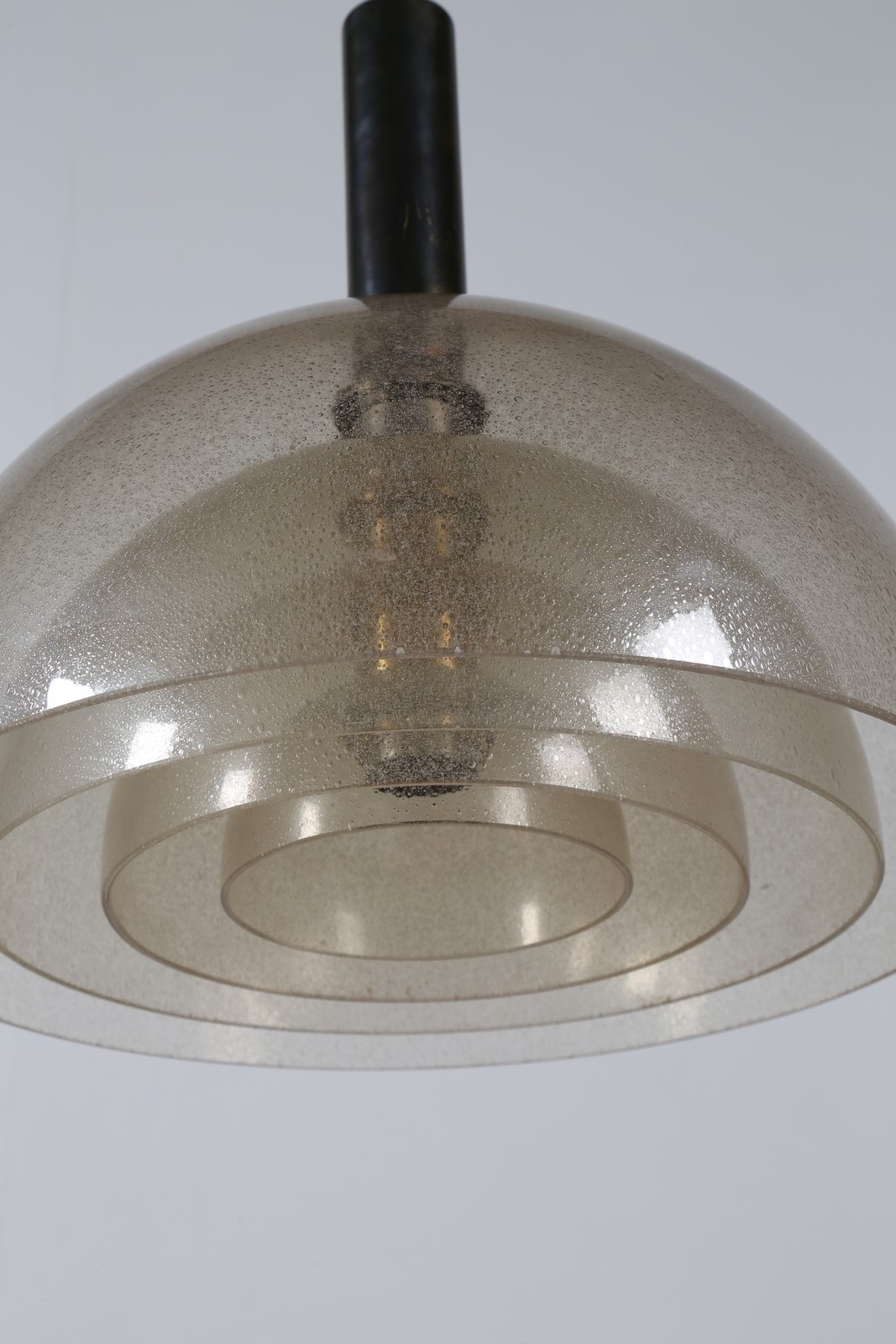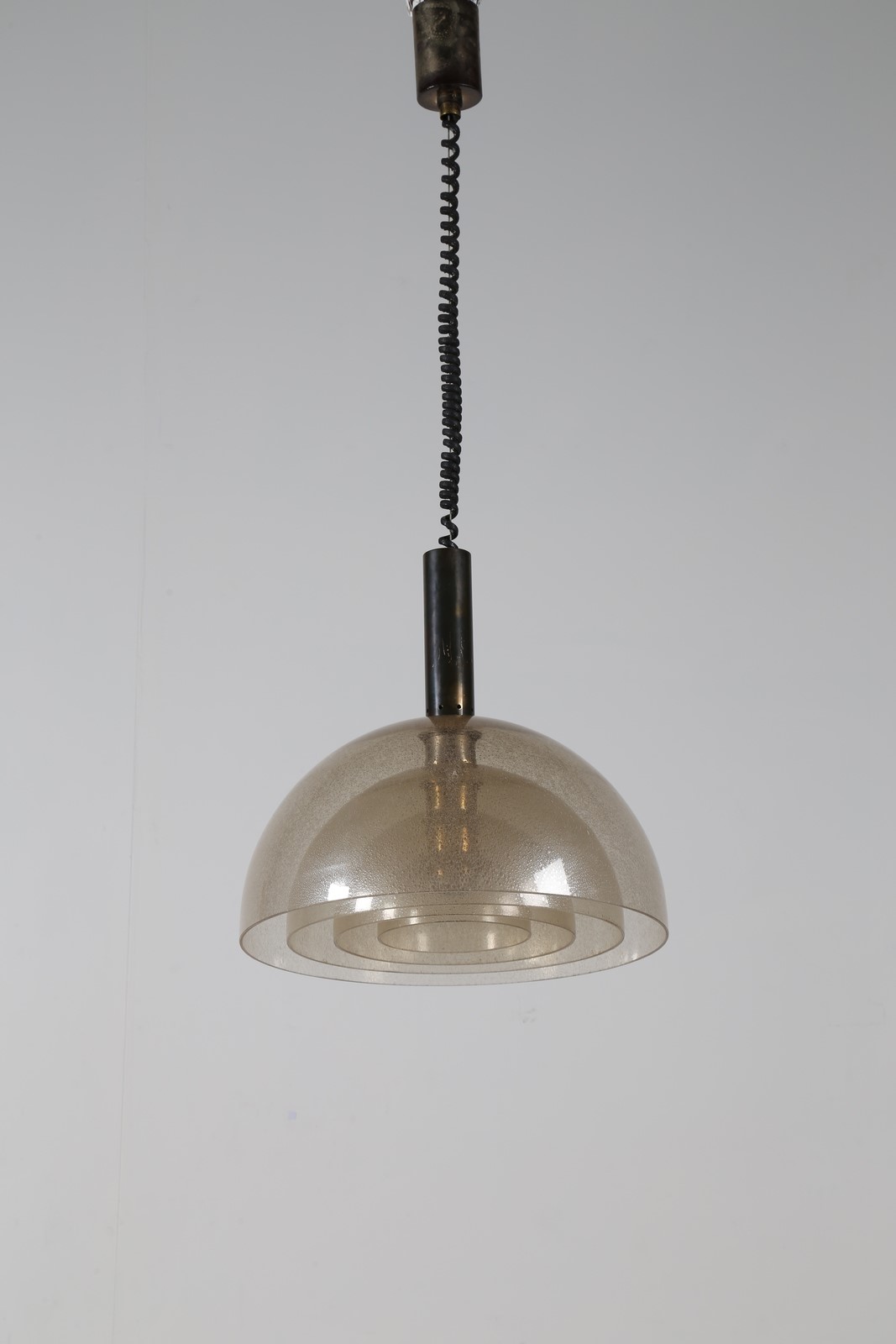 NASON CARLO (n. 1936) Lampada a sospensione in ottone e quattro vetri concentrici a bollicine, mod LS 173, per AV Mazzega, . -. Cm 46,00 x 110,00 x 46,00.