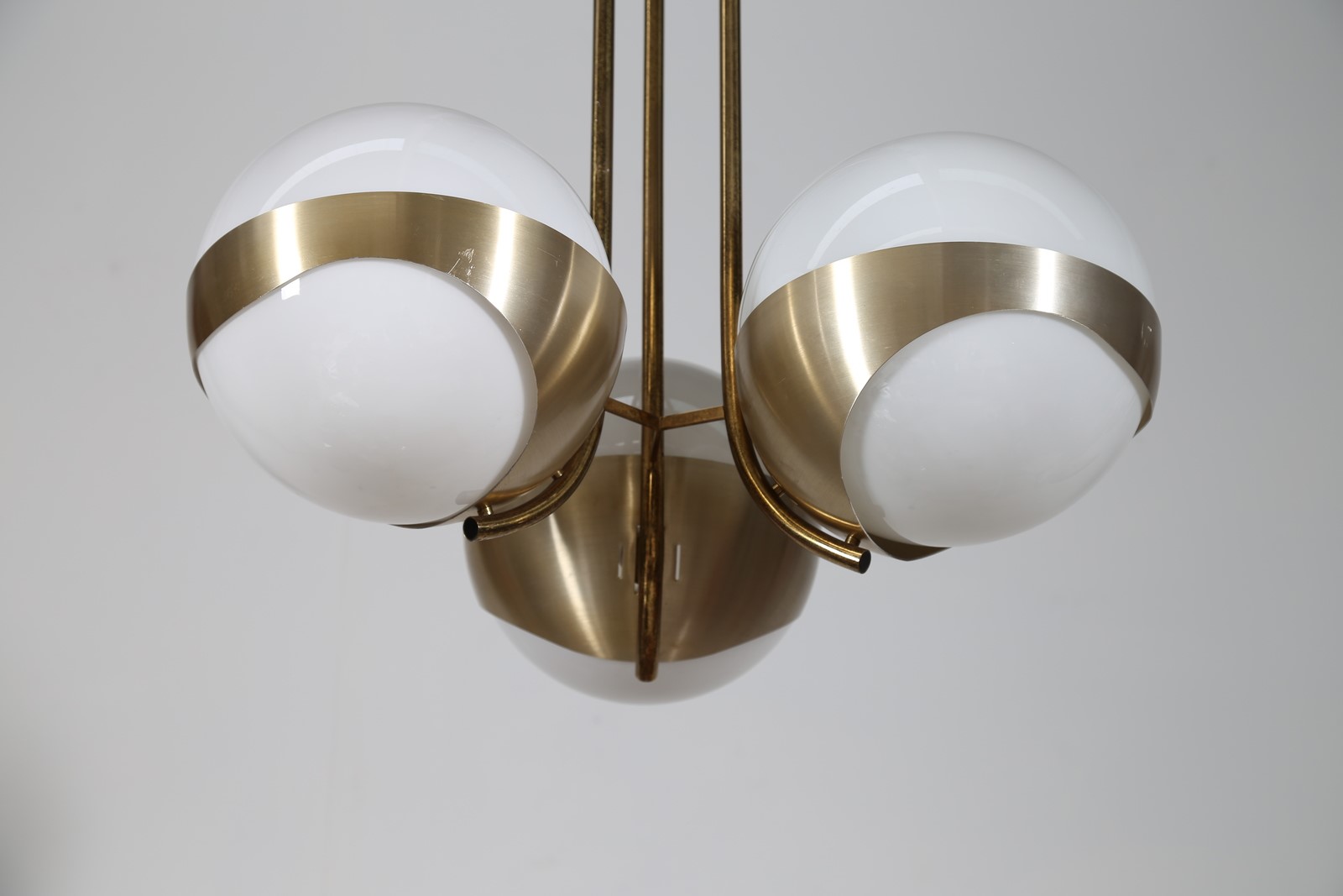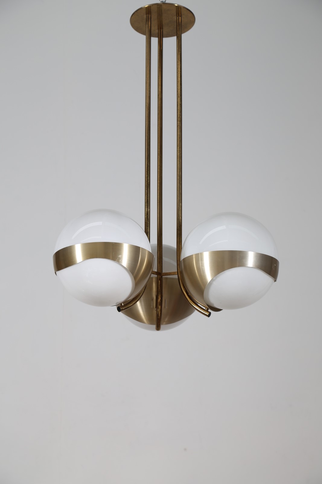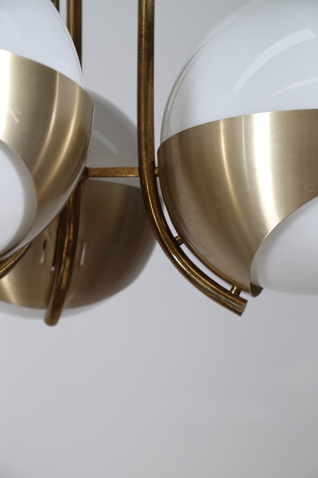 LAMPERTI Lampada da soffitto in ottone e vetro satinato, anni 60. -. Cm 65,00 x 105,00.