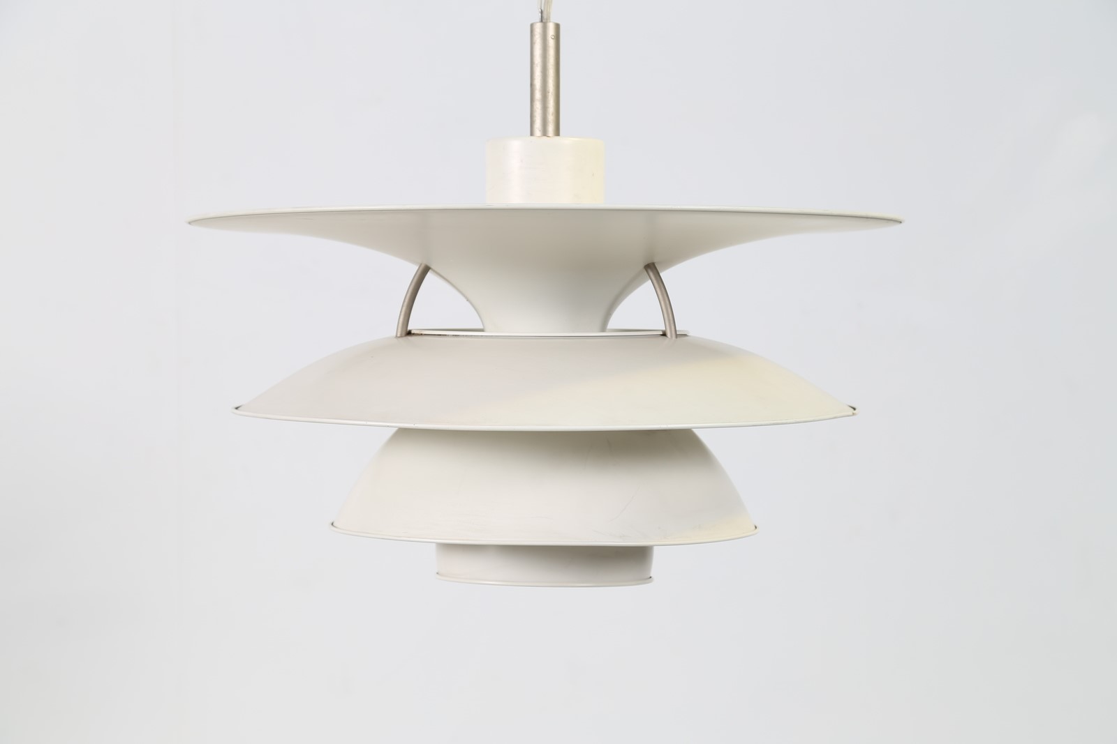 EBBE CHRISTENSEN, SOPHUS FRANDSEN, POUL HENNINGSEN Lampada a sospensione in alluminio verniciato, mod. Charlottenborg, per Luis Poulsen . -. Cm 58,00 x 40,00.