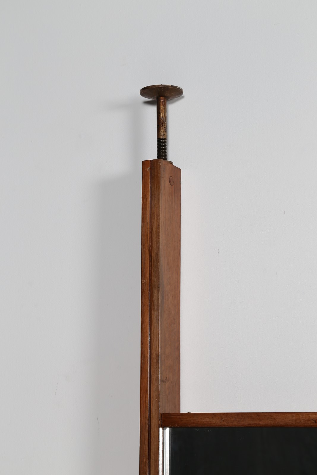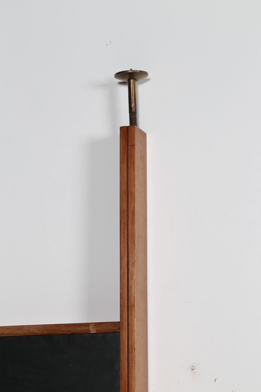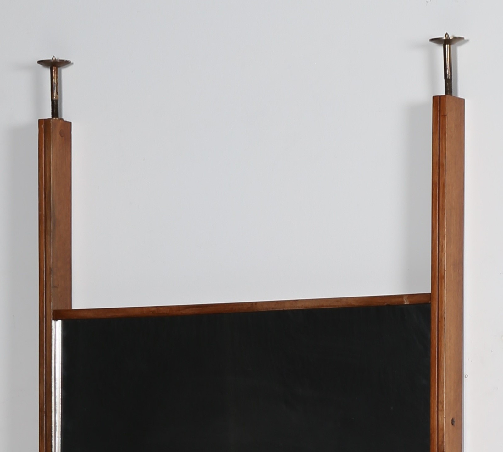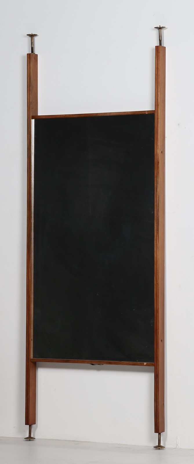 MANIFATTURA ITALIANA Specchiera da parete in palissandro con dettagli in ottone e vetro, anni 50. . Cm 81,00 x 208,00 x 6,50.