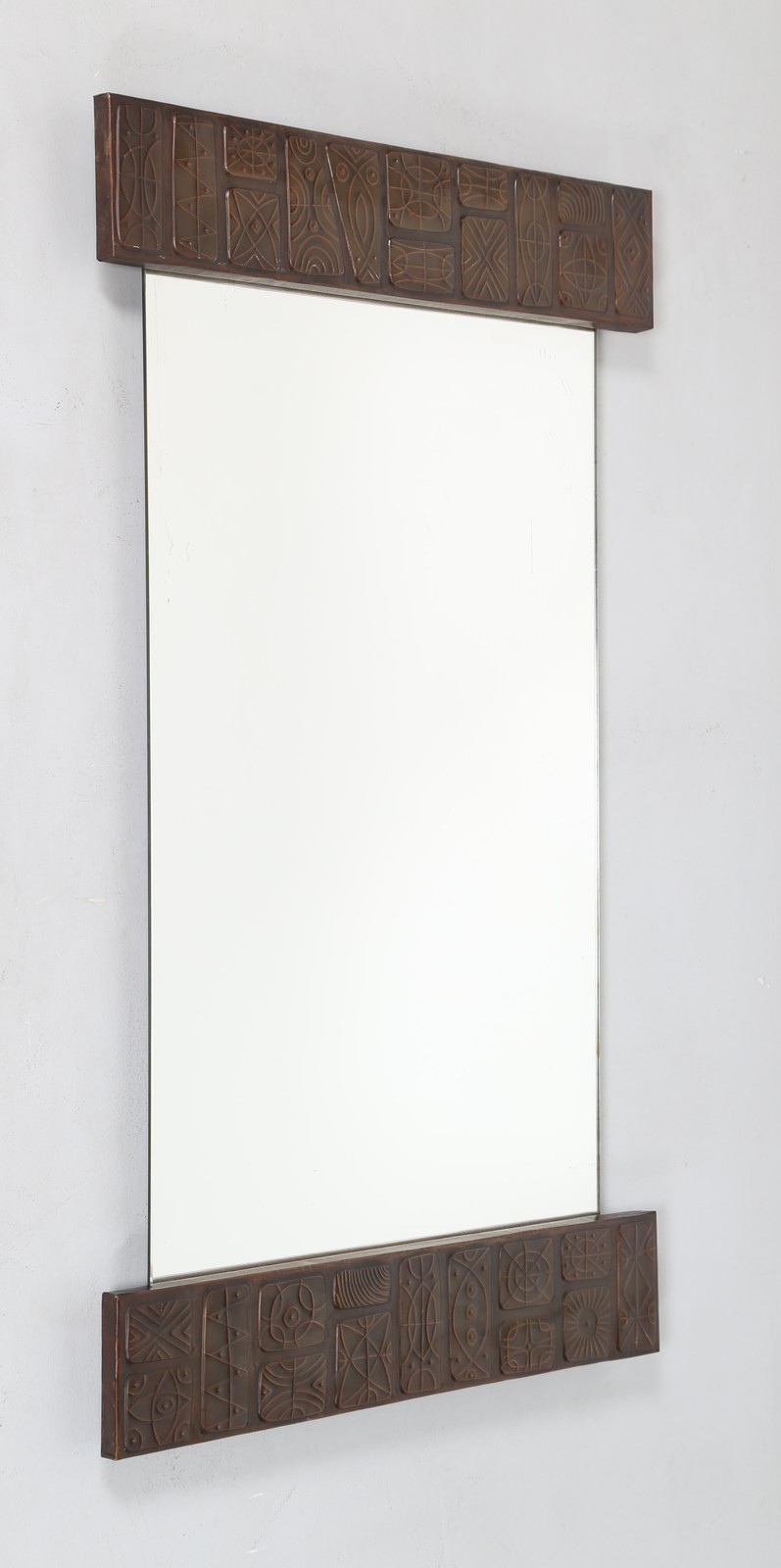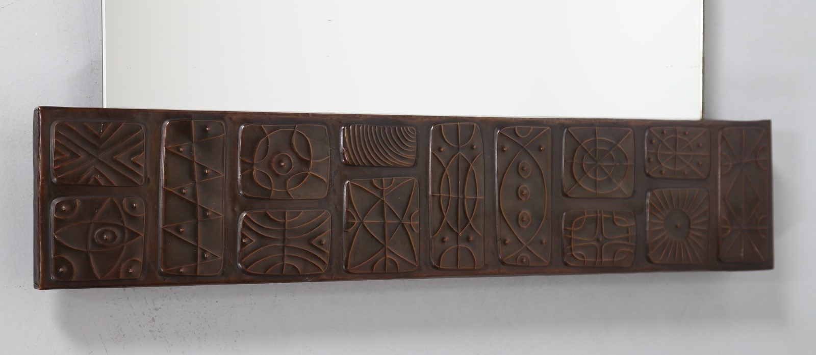 BROTTO ANGELO (1914 - 2002) Specchio da parete in bronzo scolpito, per Sant'Ambrogio e De Berti, anni 60 . -. Cm 60,00 x 104,00 x 3,00.