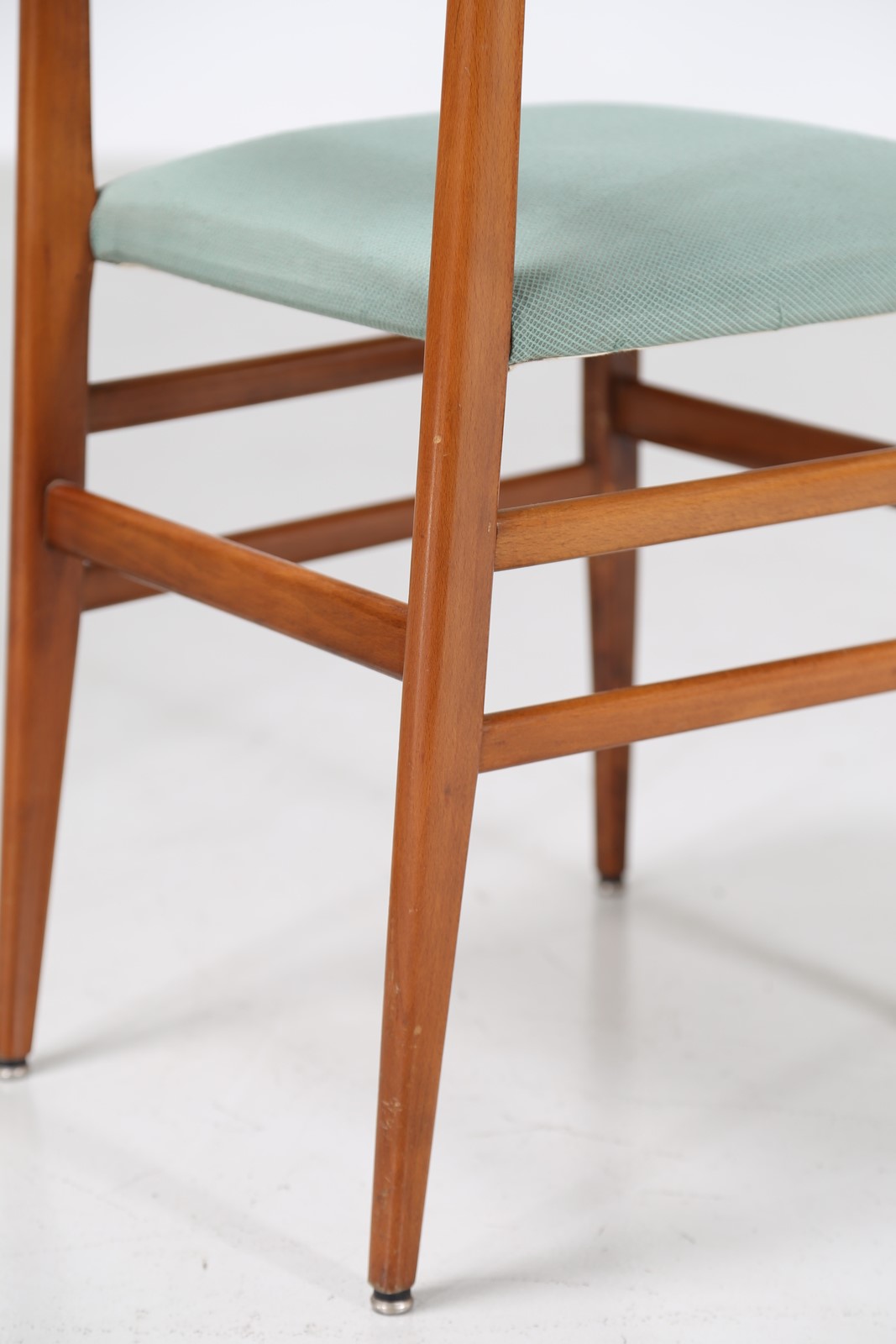 PONTI GIO' (1891 - 1979) Sei sedie in faggio e tessuto mod. leggera, produzione Figli di Amedeo Cassina di Meda 1954. Pubblicazioni; F. Mautone, Gio Ponti e la committenza Fernandes, Electa Mondadori, Napoli 2009; A.Boisi, Ospitalità cercasi, in INTERNI n° 589, marzo 2009; Archivio Storico Cassina . -. Cm 42,00 x 84,00 x 45,00.