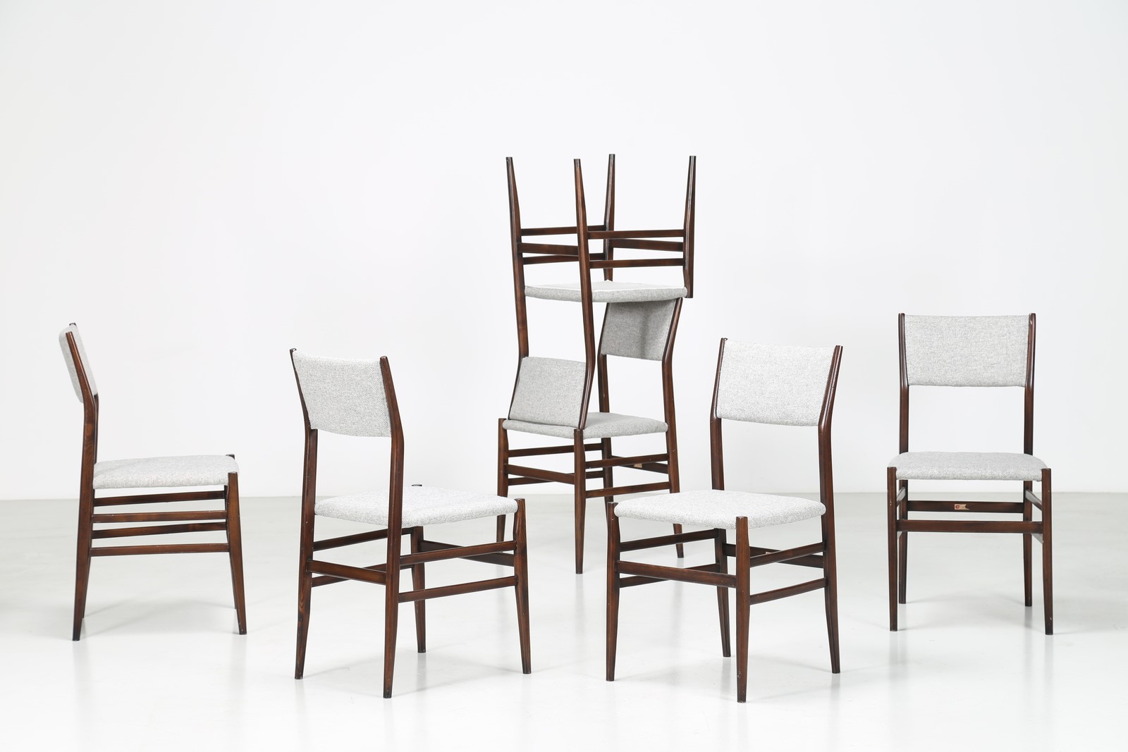 PONTI GIO' (1891 - 1979) Sei sedie in rovere e tessuto, mod. leggera,...