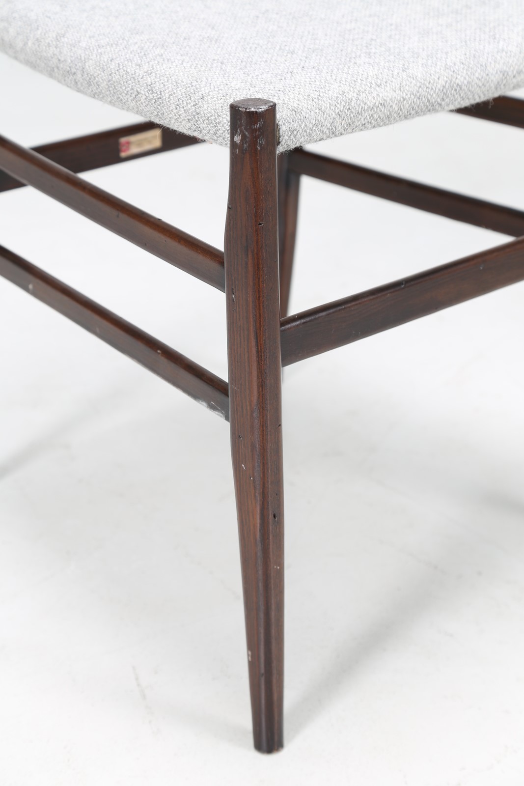 PONTI GIO' (1891 - 1979) Sei sedie in rovere e tessuto, mod. leggera, produzione Figli di Amedeo Cassina di Meda 1954. Pubblicazioni; F. Mautone, Gio Ponti e la committenza Fernandes, Electa Mondadori, Napoli 2009; A.Boisi, Ospitalità cercasi, in INTERNI n° 589, marzo 2009; Archivio Storico Cassina . -. Cm 43,00 x 84,00 x 42,00.
