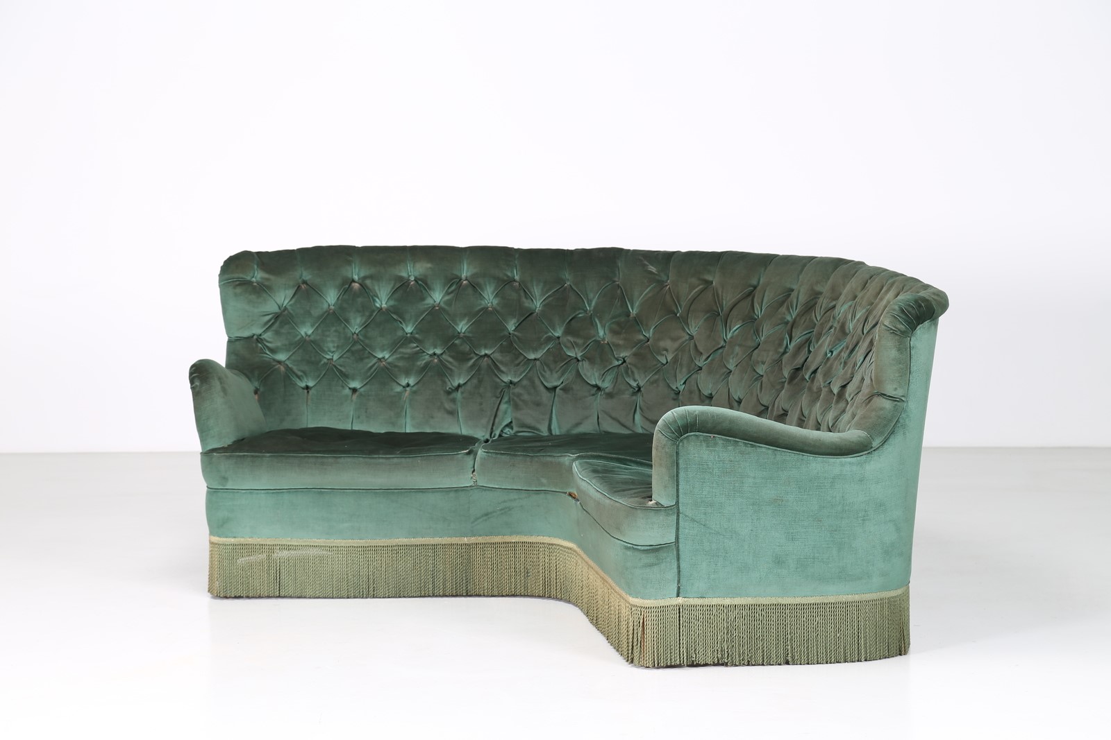 Lotto 246 | BORSANI OSVALDO (1911 - 1985) Divano ad angolo in legno e tessuto originale,...
