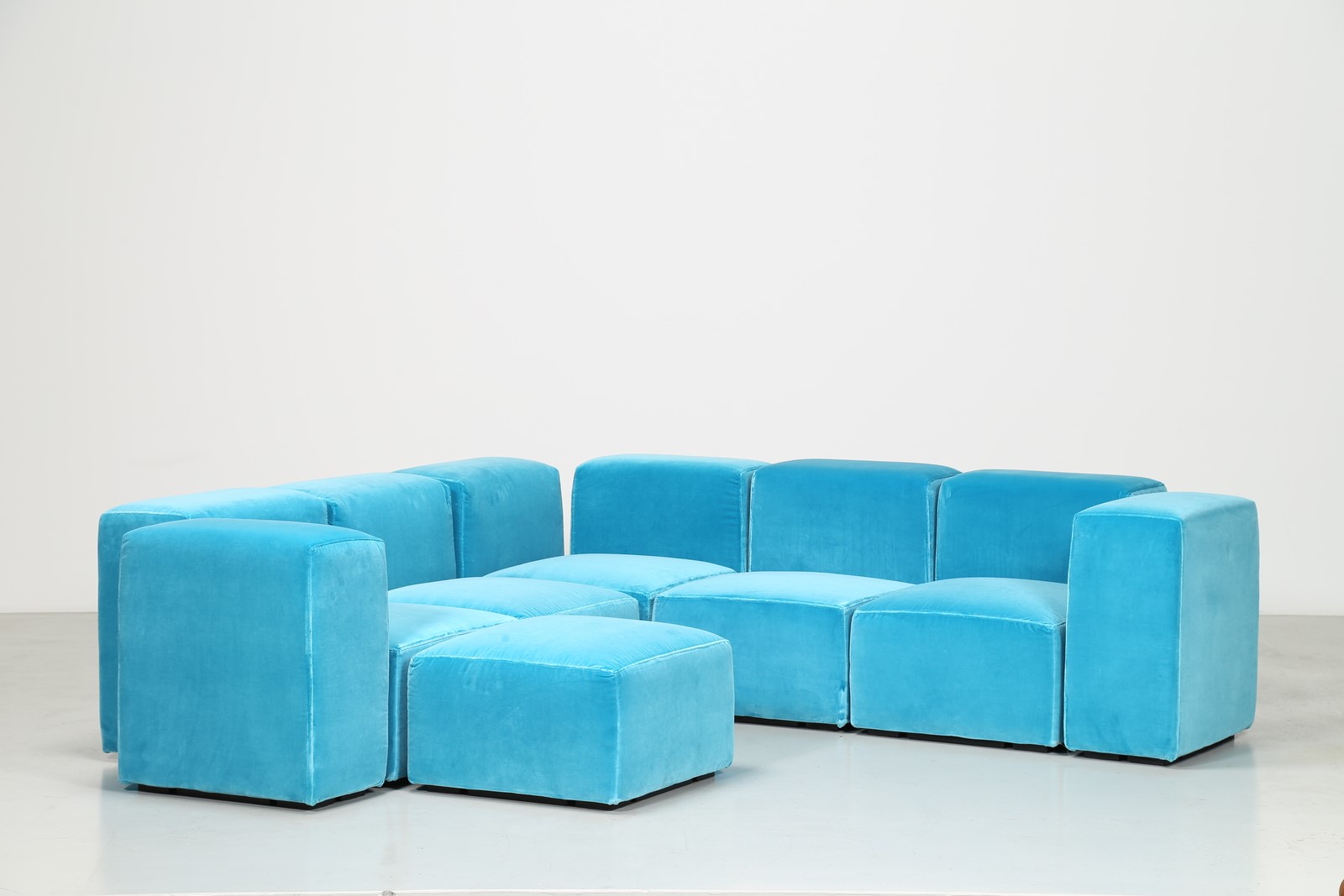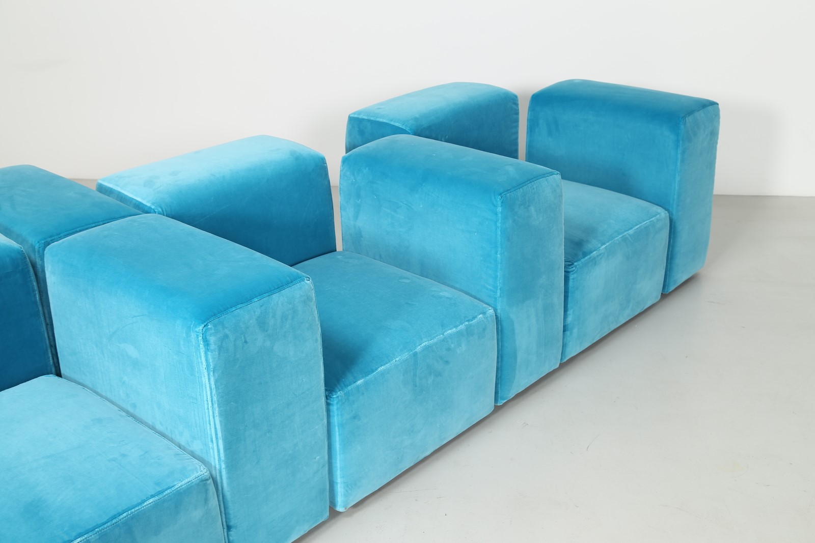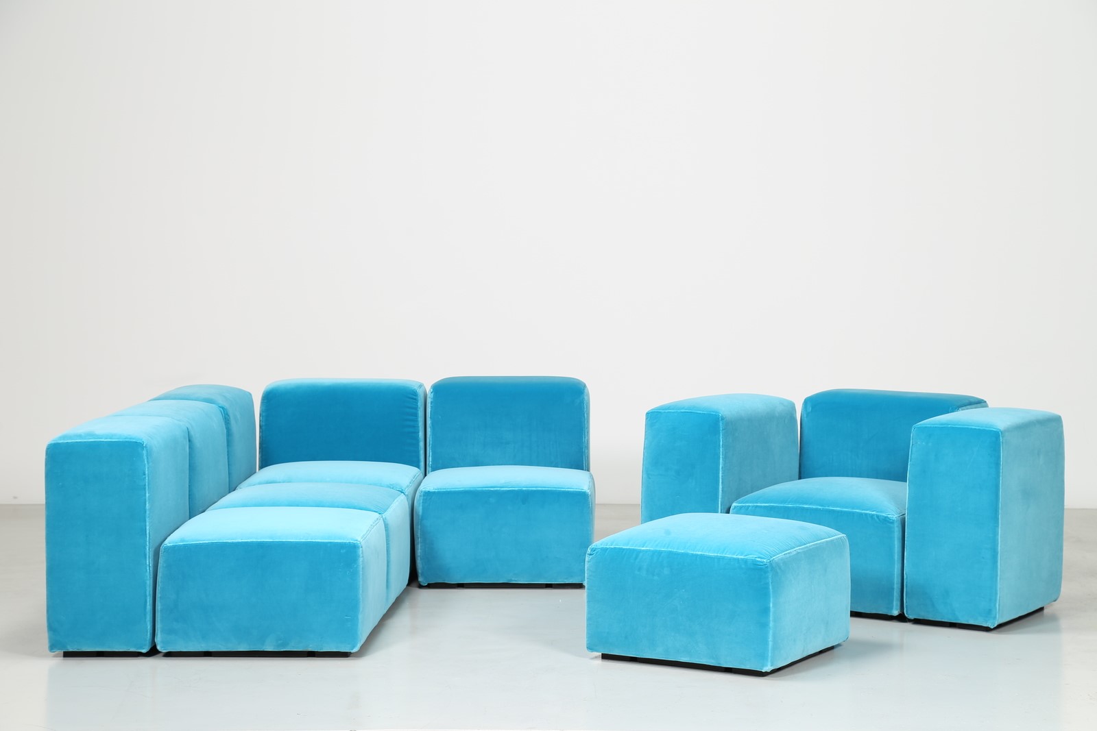 PIRETTI GIANCARLO (n. 1940) Divano modulare in tessuto e plastica, per Anonima Castelli anni 70. -. . Misura modulo basso (seduta) H 38 L 62 P 62 Misura modulo alto (spalla) H 67 L 62 P 31