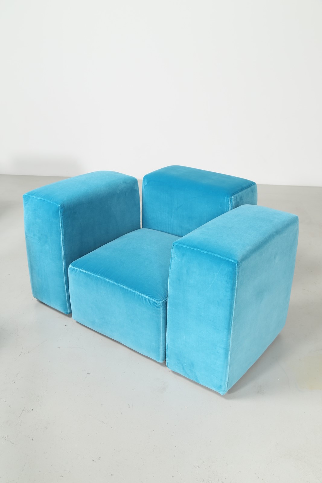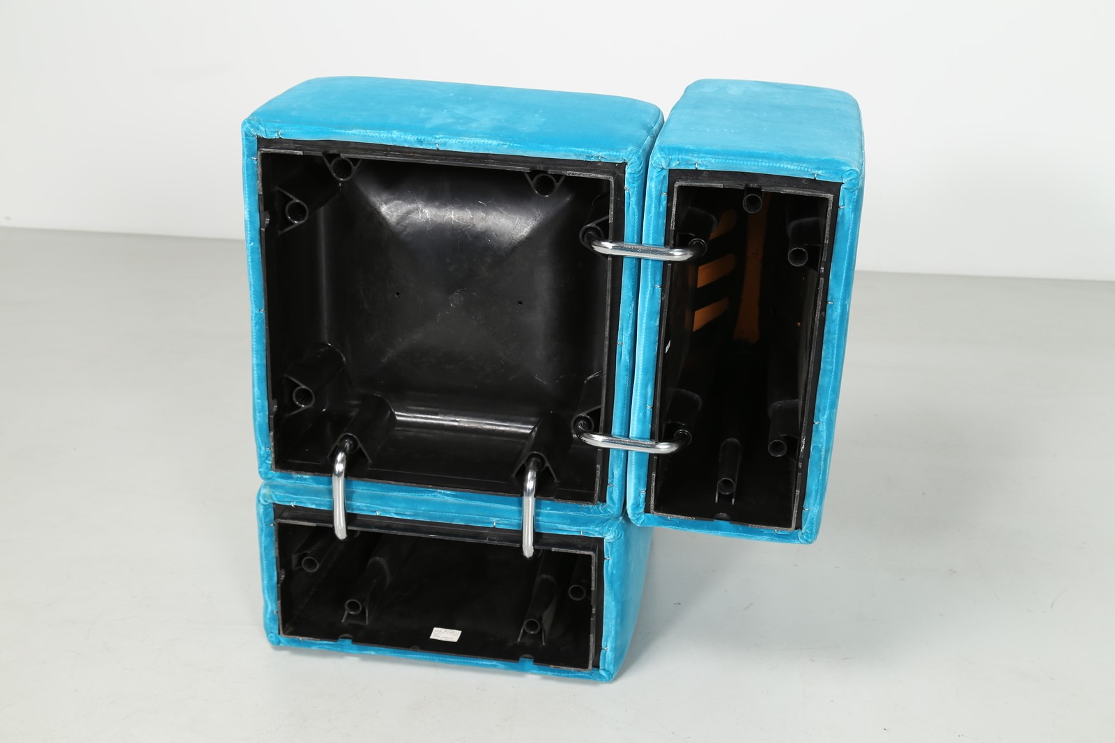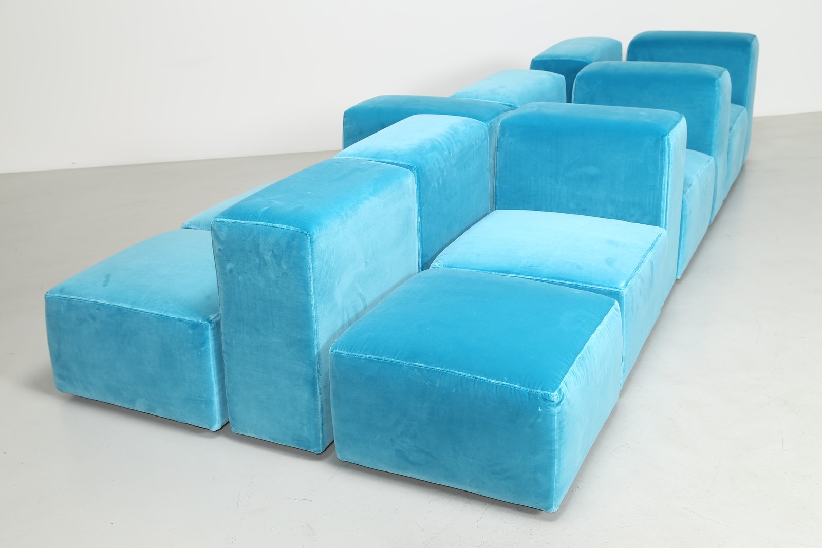 PIRETTI GIANCARLO (n. 1940) Divano modulare in tessuto e plastica, per Anonima Castelli anni 70. -. . Misura modulo basso (seduta) H 38 L 62 P 62 Misura modulo alto (spalla) H 67 L 62 P 31
