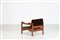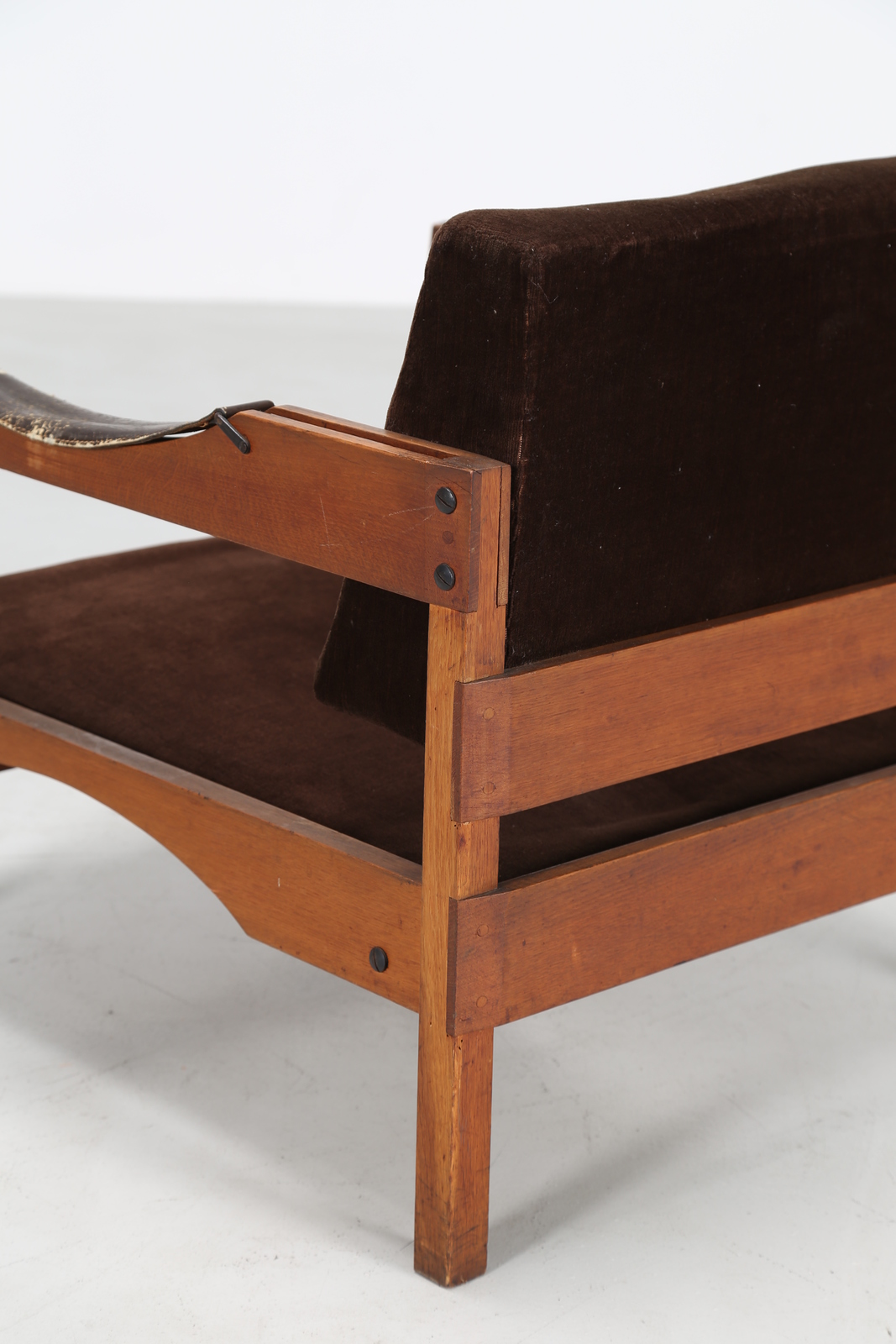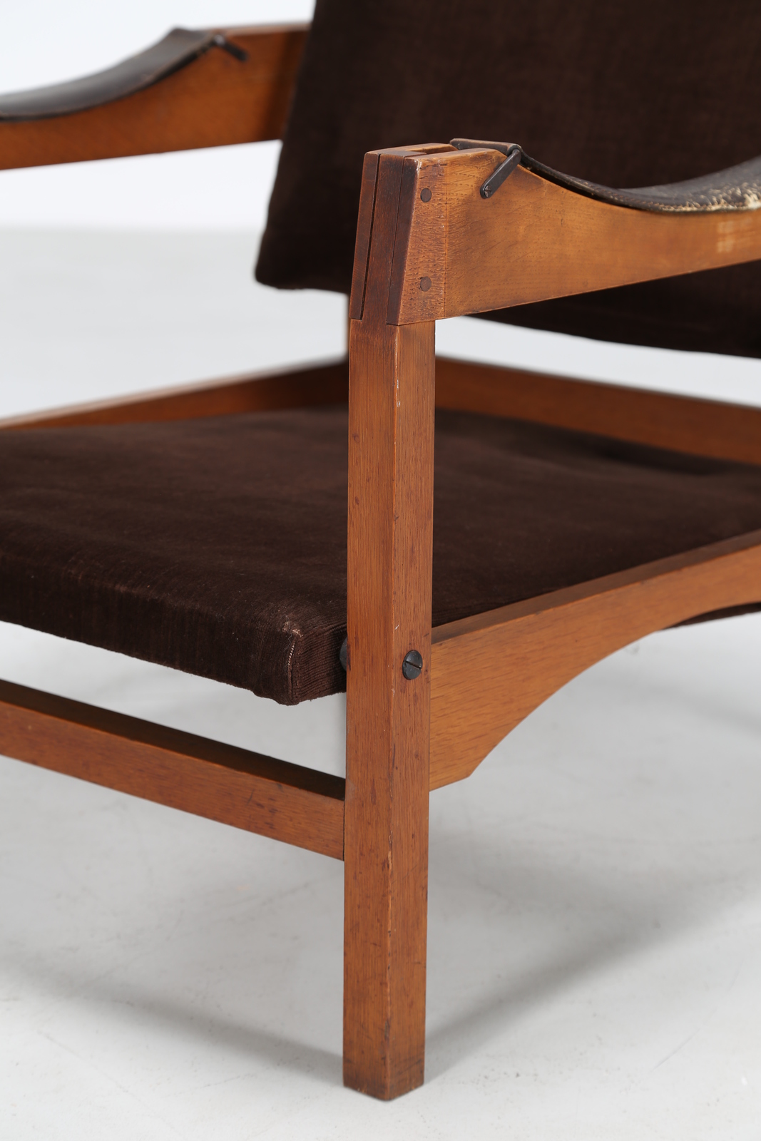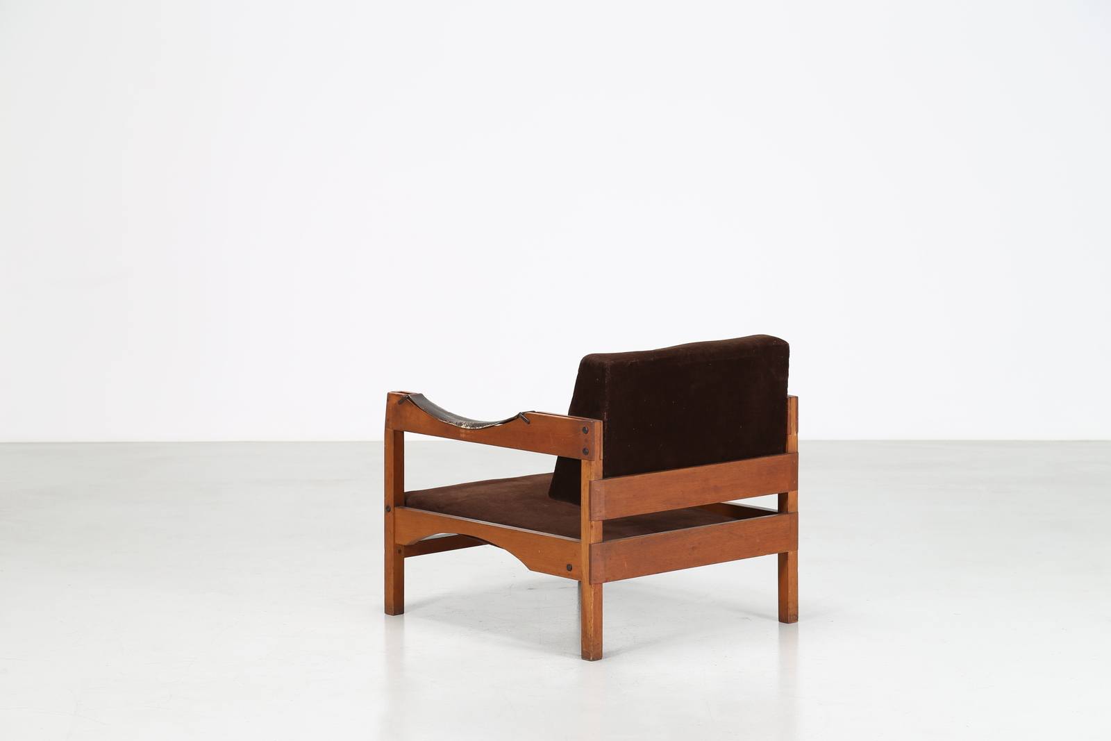 MANIFATTURA ITALIANA Poltrona in teak e cuoio, anni 60 . -. Cm 69,00 x 68,00 x 78,00.