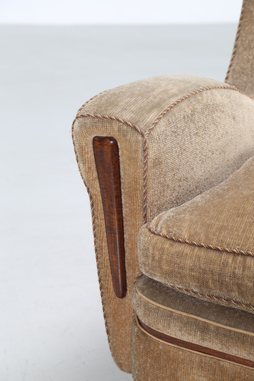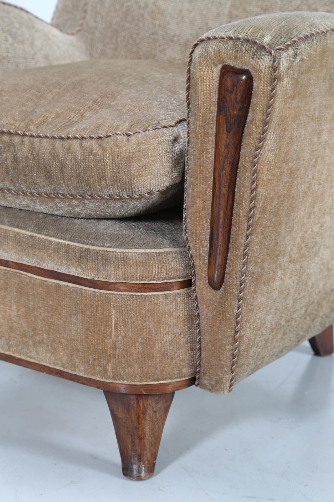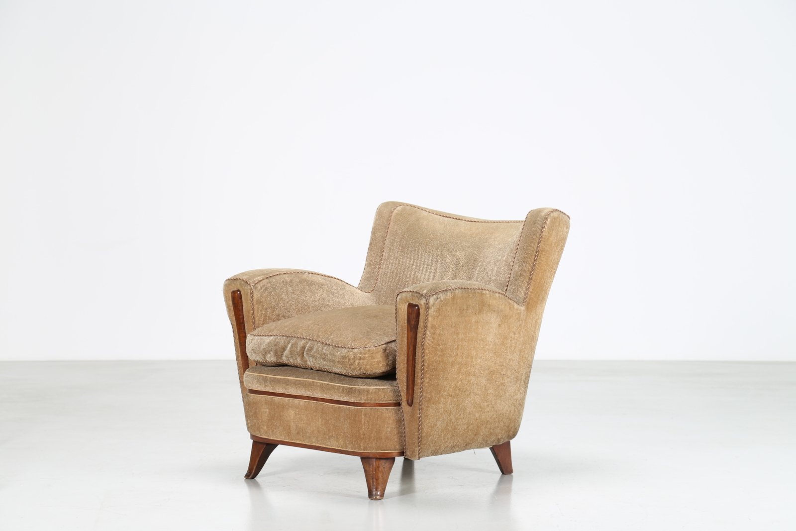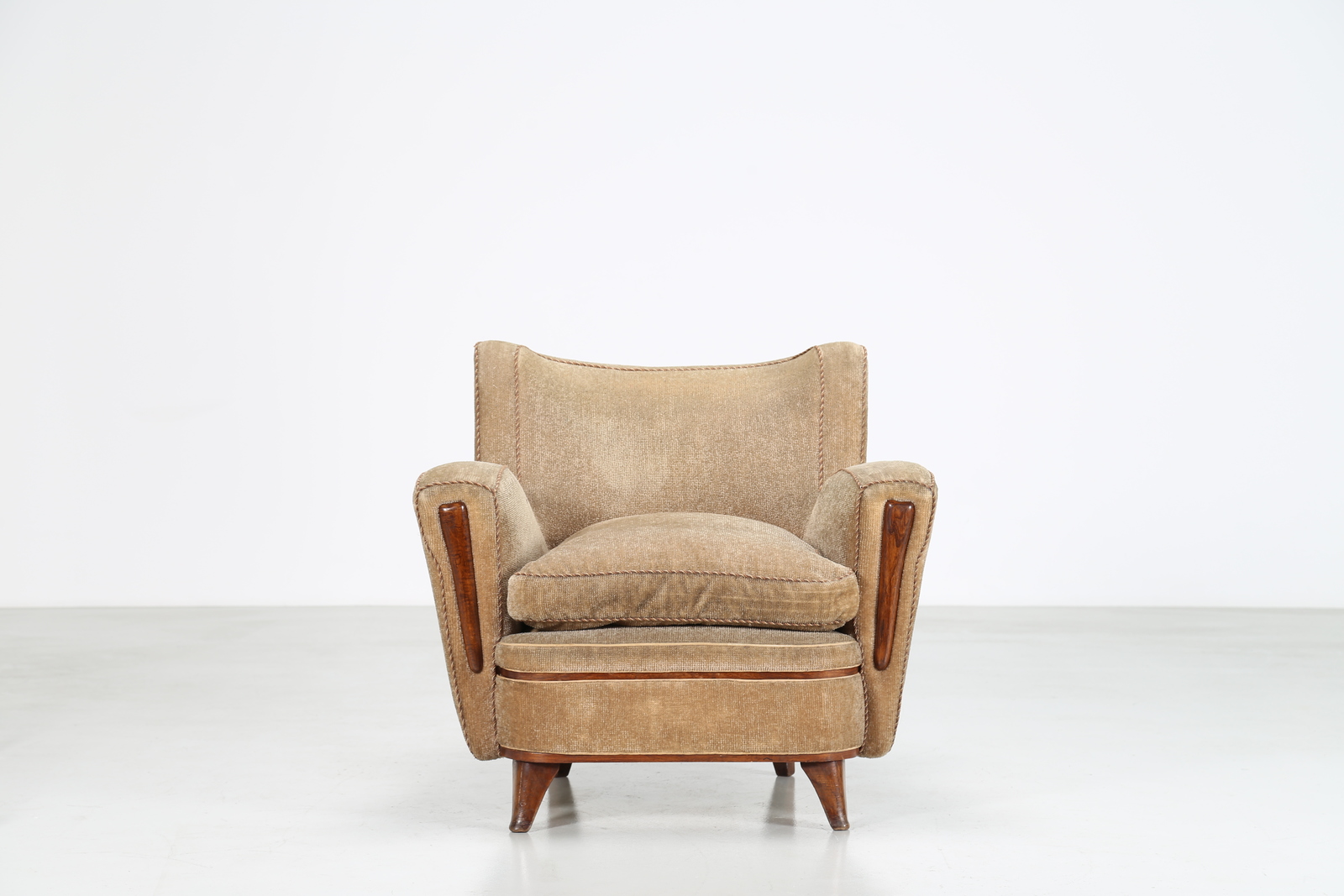 MANIFATTURA ITALIANA Poltrona in legno e tessuto, anni 50. -. Cm 93,00 x 83,00 x 90,00.