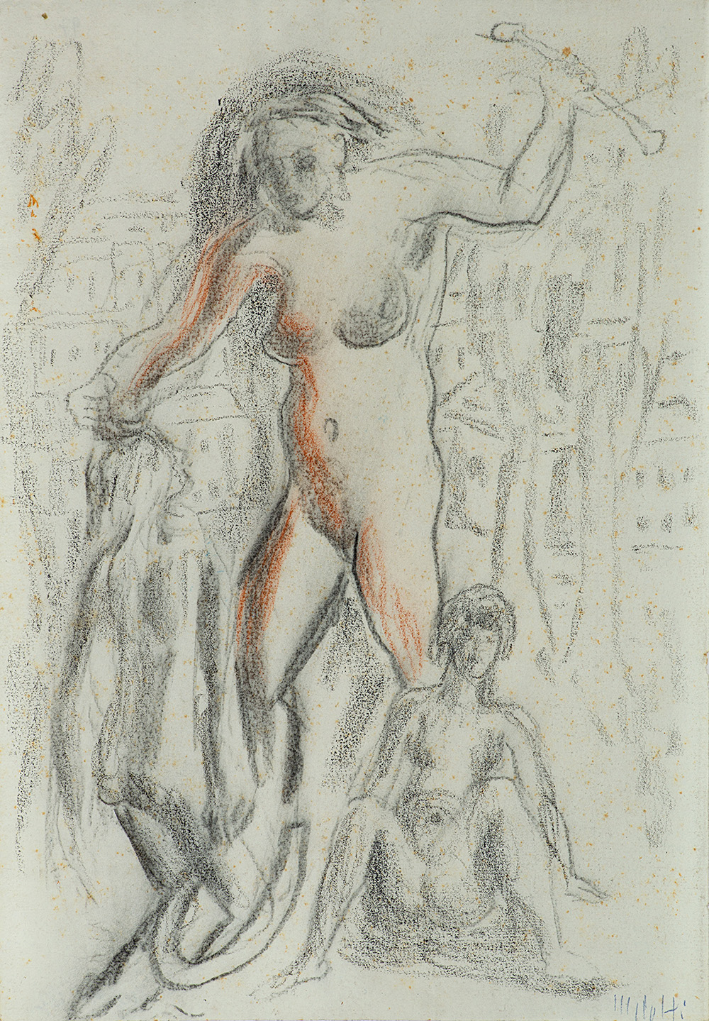 FAUSTO MELOTTI (1901 - 1986) Morte di Orfeo, 1926 matita Contè e sanguigna su...