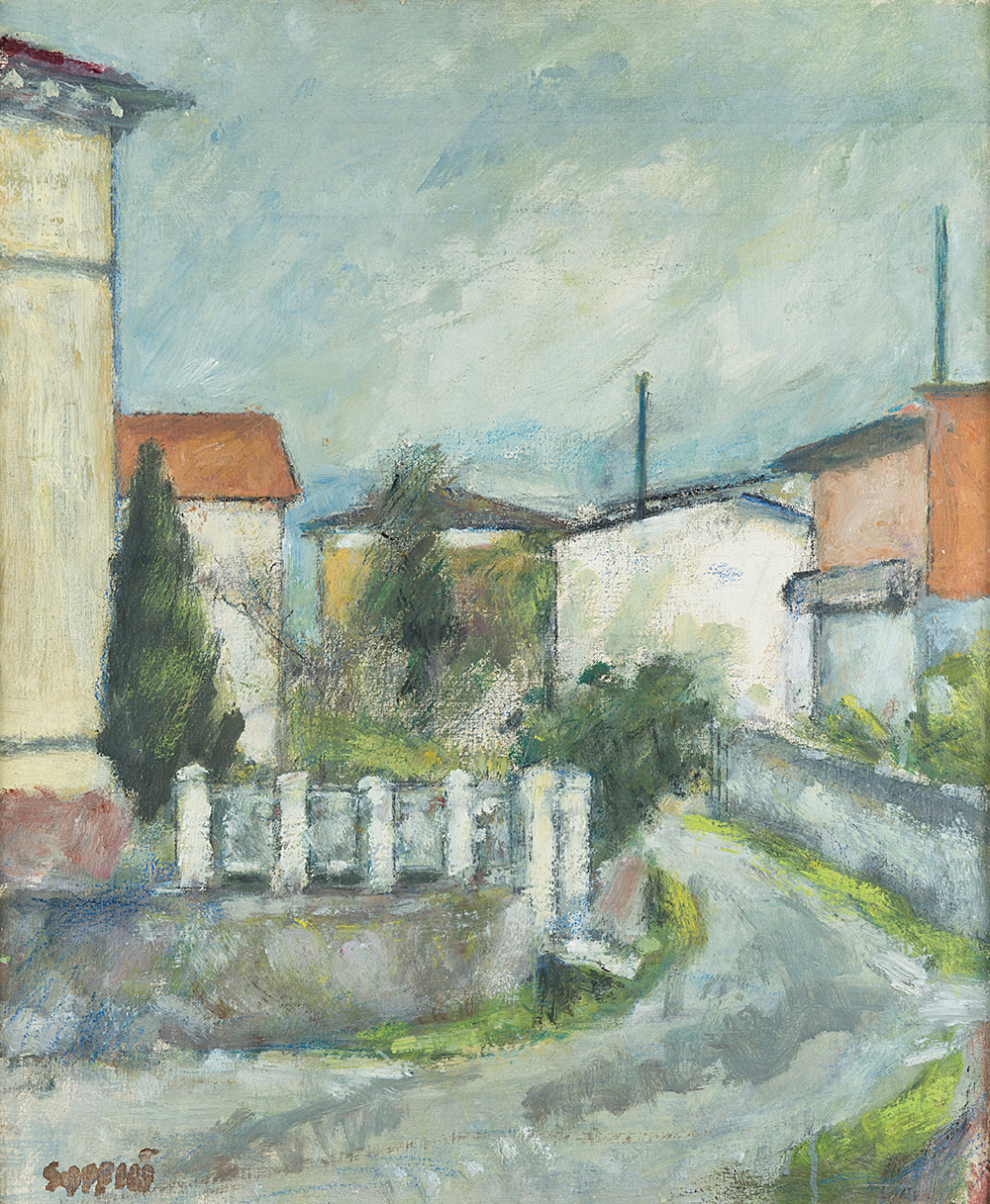 ARDENGO SOFFICI (1879 - 1964) Giornata piovosa. Paesaggio toscano. (Case di paese), 1962