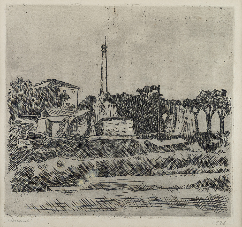 GIORGIO MORANDI (1890 - 1964) Paesaggio con la ciminiera (Sobborghi di Bologna), 1926