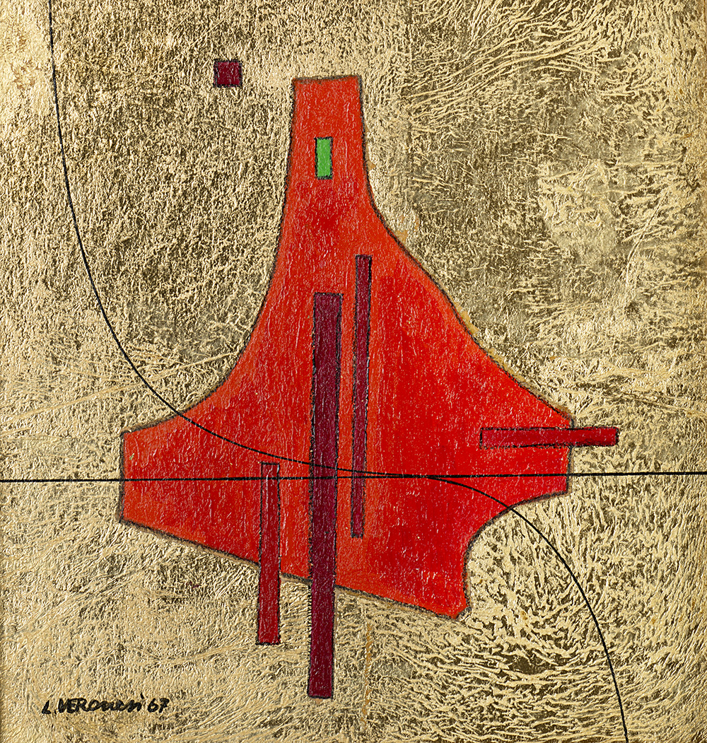 LUIGI VERONESI (1908 - 1998) Forma n.4, 1964 acrilico e foglia d'oro su...
