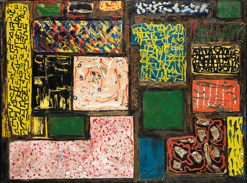 ALBINO GALVANO (1907 - 1990) Composizione, 1955 olio su tela, cm 90x120 Firma...