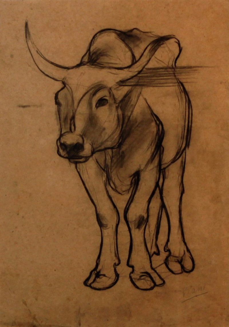Lorenzo Viani (Viareggio 1882 – Lido di Ostia 1936) Bove 1902/1904 Matita su carta dim.32,5X24 Firmato in basso a dx Opera archiviata in data 09/09/2004 a cura dell'Archivio Enrico Dei