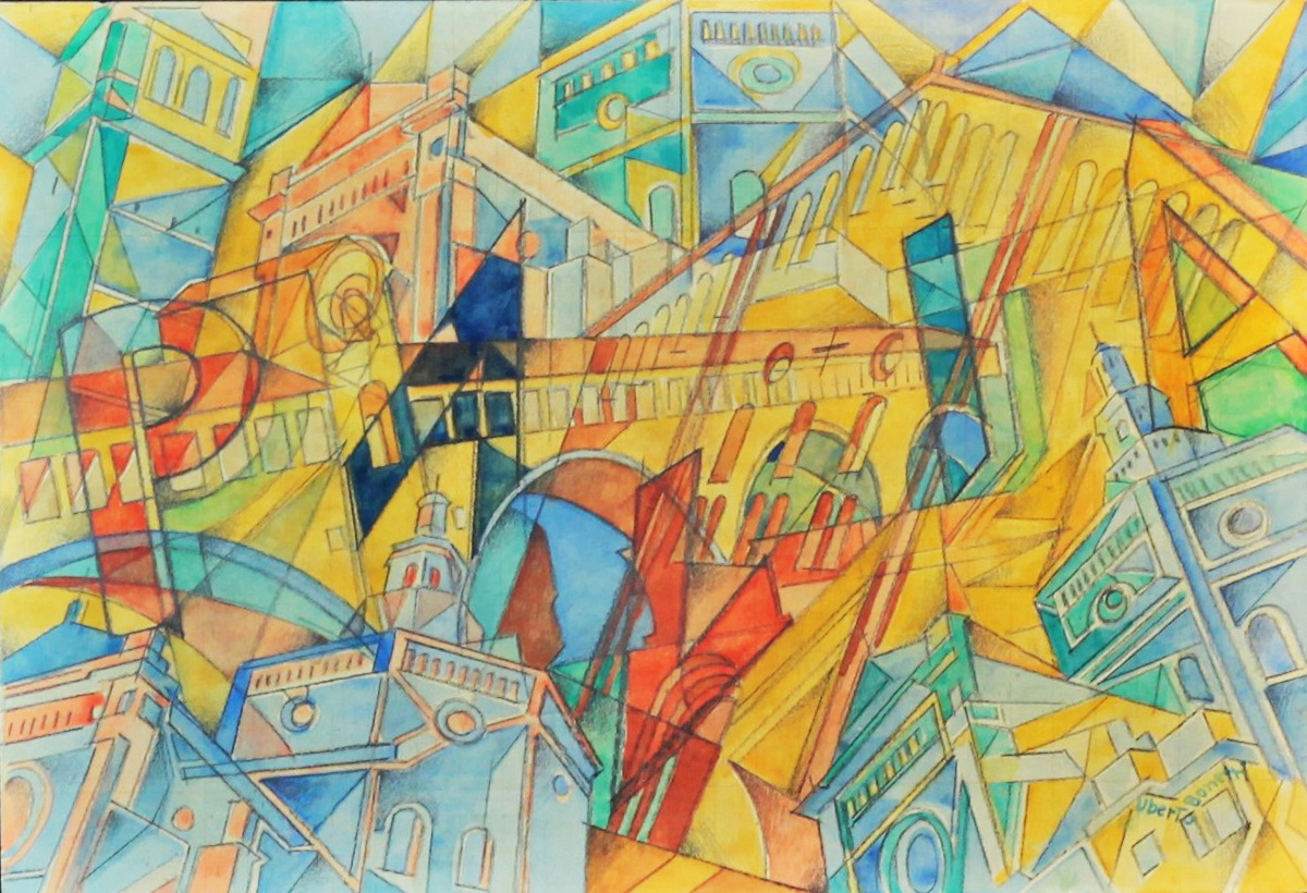Uberto Bonetti (Viareggio 1909 – Viareggio 1993) Pavia Anni 30 Tecnica mista su carta dim. 21,5X30,8 Firmato in basso a dx Opera Archiviata con il numero 1007 presso l'Archivio Adriana Bonetti