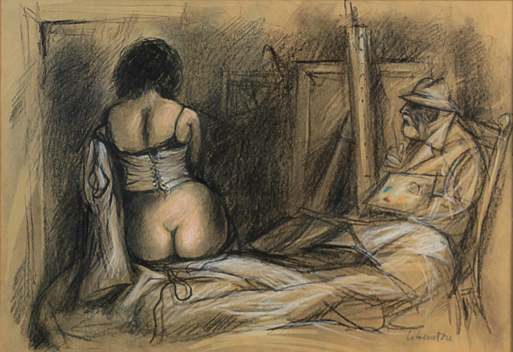 Fausto Maria Liberatore (Lucca 1922 – Lido di Camaiore 2004) Pittore e modella Anni 80 Tecnica mista su cartoncino dim. 35X50 Firmato in basso a dx