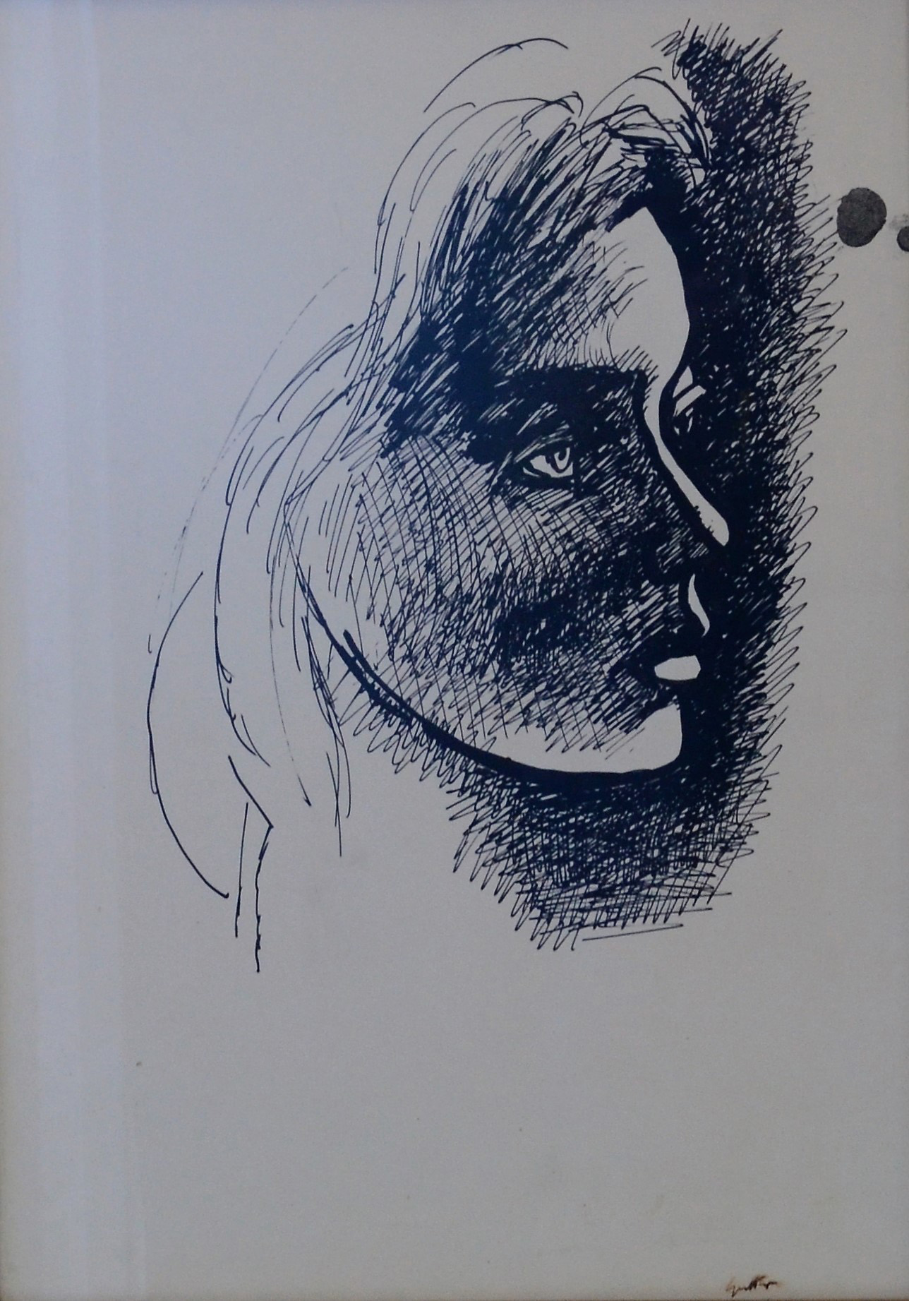 Renato Guttuso (Bagheria 1911 – Roma 1987) Figura Anni 70 China su carta dim. 51X36,5 Firmato in basso a dx Autentica su foto dell'Artista Lettera del proprietario a Renato Guttuso con la quale richiede la foto autenticata in data 1982