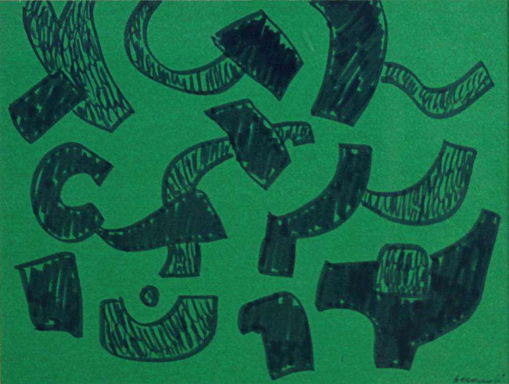 Carla Accardi (Trapani 1924 – Roma 2014) Blu su verde 1998 Tecnica mista su cartoncino dim. 24X31,2 Firmato in basso a dx Autentica dell'Artista su fotografia Opera certificata al numero 59/07 dello Studio Accardi