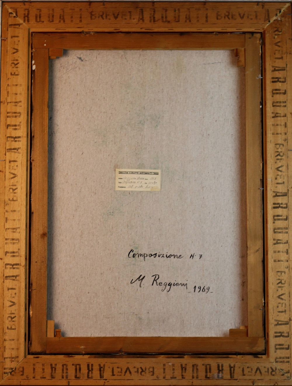 Mauro Reggiani (Nonantola 1897 – Milano 1980) Composizione N.7 1969 Acrilico su tela dim. 70X50 Titolo, firma e data al verso Opera archiviata 69/07 presso l'Archivio Mario Reggiani