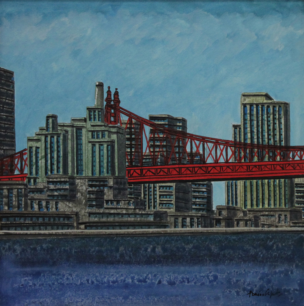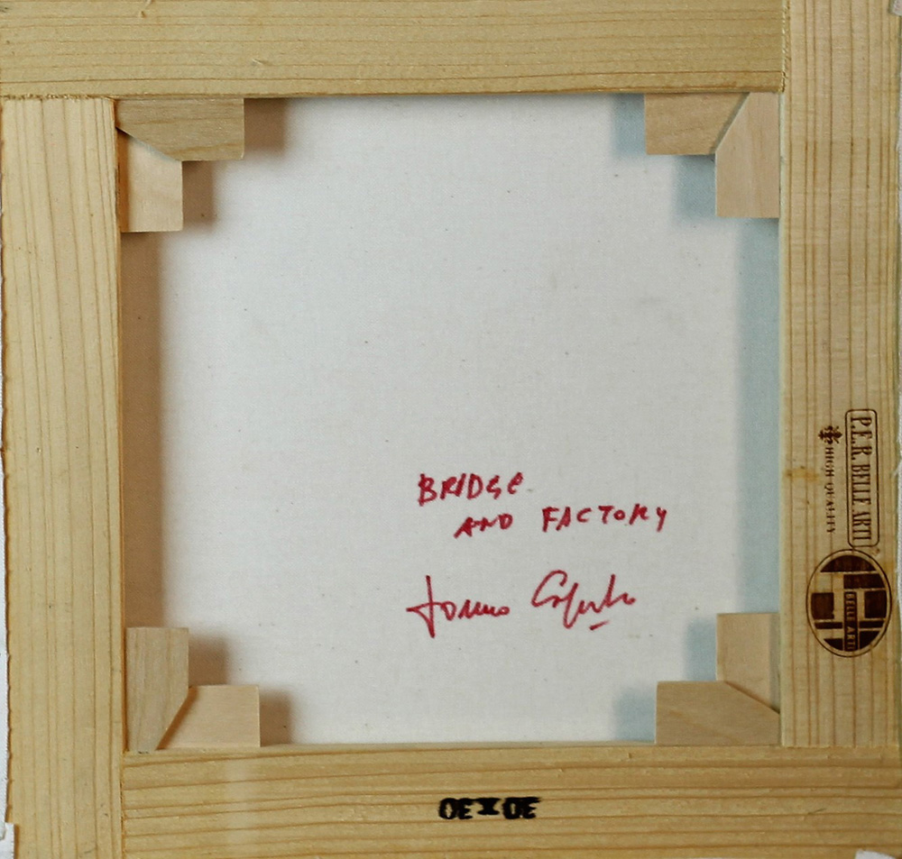 Tonino Caputo (Lecce 1933) Bridge and Factory Acrilico su tela dim. 30X30 Firmato in basso a dx Al verso firma e titolo
