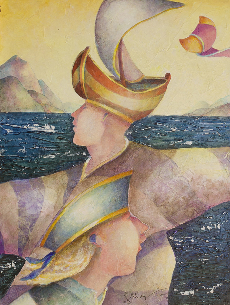 Francesco Nesi (San Casciano Val di Pesa 1952) Amanti del mare 2003 Acrilico su masonite dim. 40X30 Firmato in basso a dx Al verso titolo e firma Autentica su foto dell'Artista Opera senza cornice
