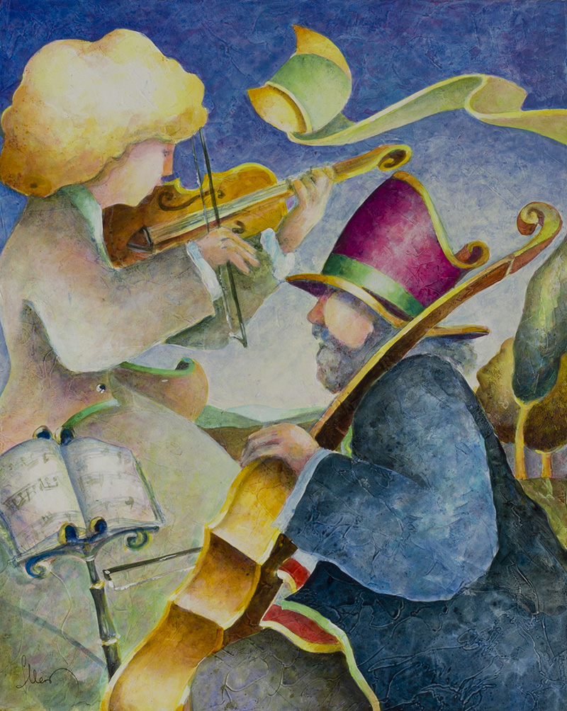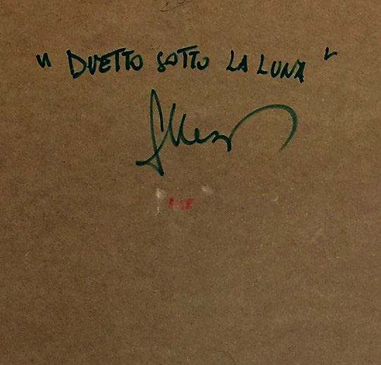 Francesco Nesi (San Casciano Val di Pesa 1952) Duetto sotto la luna 2003 Acrilico su masonite dim. 50X40 Firmato in basso a sx Al verso titolo e firma Autentica su foto dell'Artista