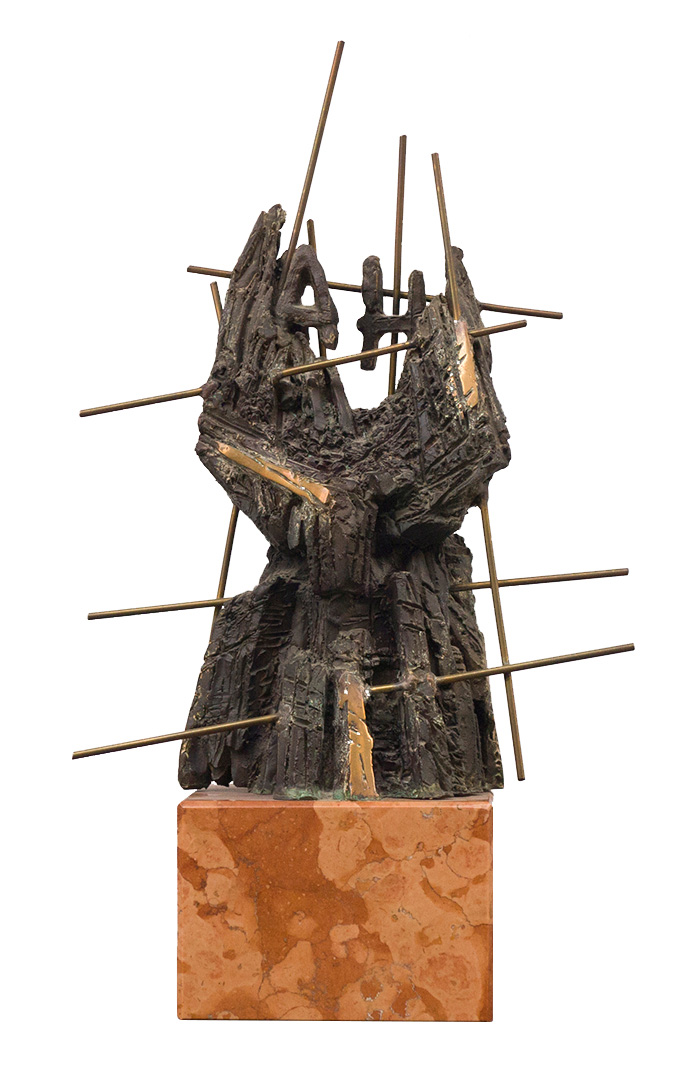 Vinicio Berti (Firenze 1921 – Firenze 1991) Grande Emblema 2009 Scultura bronzo e ottone con base di marmo, Dim. 37x11x 21 Esemplare 12/15 Firmato sul lato sx Autentica su foto dell'Artista