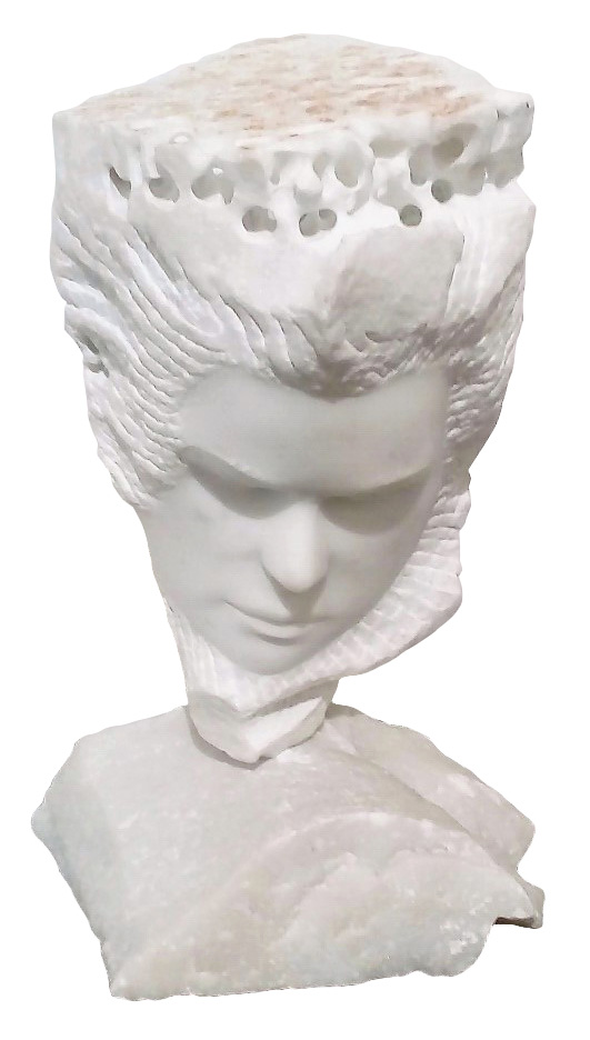 Elias Naman (Yabroud 1980) Zenobia, La celebre regina di Palmira 2016 Scultura in marmo bianco di Carrara Dim. 35X25X28 Firmato sul fronte Autentica su foto dell'Artista
