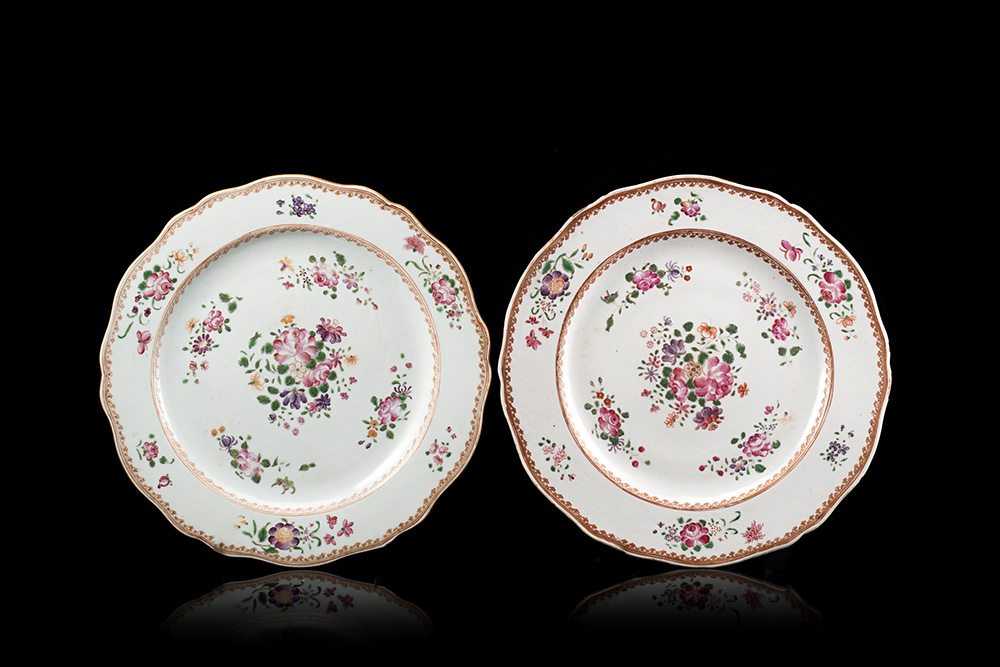 Lotto 7 | Arte orientale. Due piatti in porcellana. Bordo mistilineo con fiori...