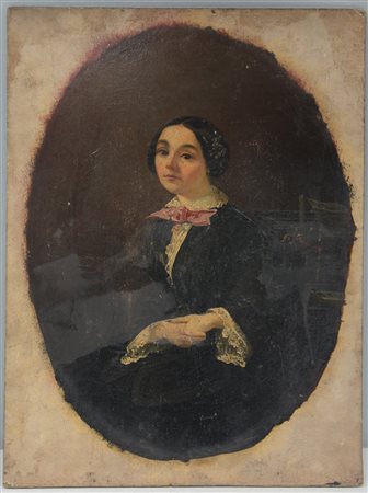 Scuola del secolo XIX "Ritatto di Gentildonna" olio su tavoletta (cm 33x24,5)...