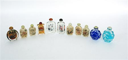 Arte di Cina, lotto di undici snuff bottle in vetro, misure e decori diversi...