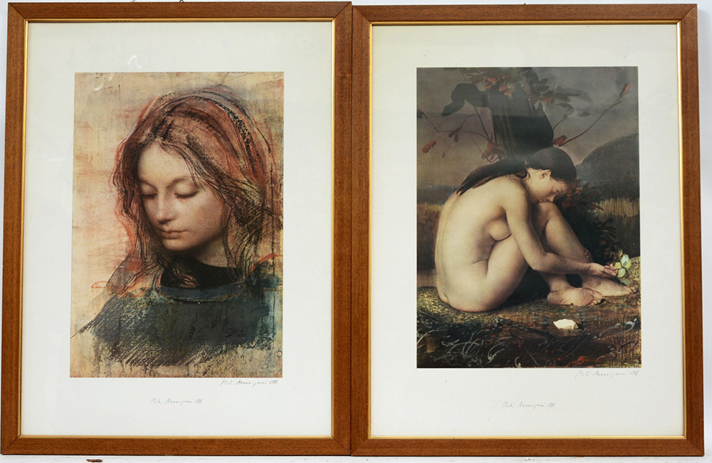 Pietro Annigoni (Milano 1910 - Firenze 1988) Lotto di due stampe raffiguranti personaggi femminili firmate a penna in basso a destra, in cornici